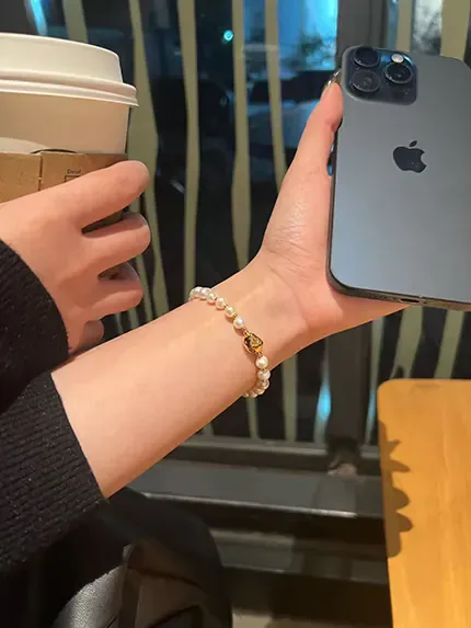 “🌸 This pearl bracelet is pure elegance! The tiny pearls shimmer softly under the light, and the little gold charm in the center is the perfect finishing touch — subtle yet refined for everyday wear.”