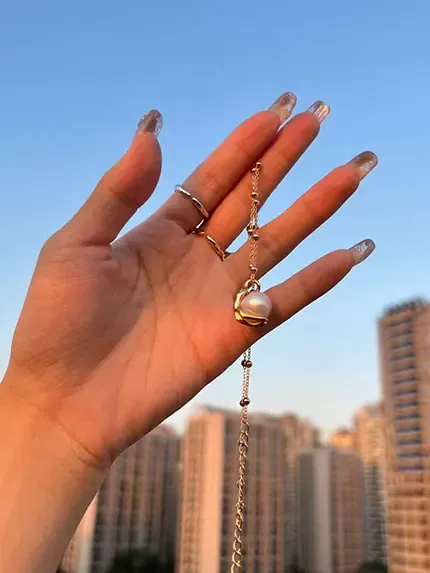 “I love how delicate this chain is — the pearl sits so gracefully, and the warm gold tone makes it perfect for summer evenings.”