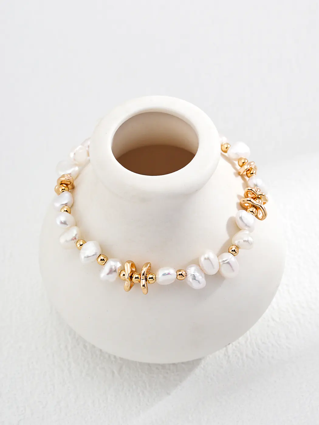 Crafted from strong S925 sterling silver with vintage-gold plating, this bracelet merges durability with classic grace. The fine chain supports the pearls securely, ensuring both comfort and longevity.