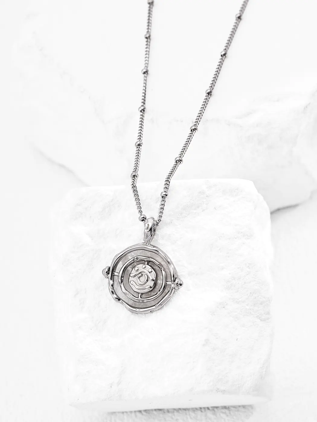 The necklace is carefully crafted from 925 sterling silver, ensuring strength as well as lasting brilliance. Furthermore, the chain features tiny silver beads, which provide subtle detail and an elegant rhythm. Because of its 40 cm chain plus 6 cm extender, the length adjusts easily for various necklines. In fact, the pendant measures about 2 cm, offering a bold look without feeling heavy. As a result, the piece combines wearability with strong design presence.