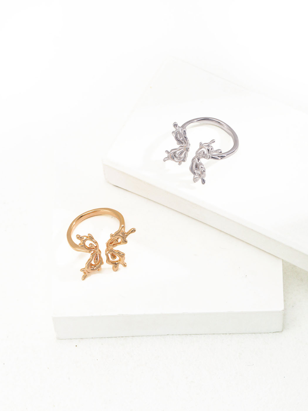 This butterfly wing ring captures the grace of nature through elegant design. The band opens into butterfly wings that curve gently across the finger, creating a sense of movement and lightness. The delicate shapes highlight fine craftsmanship, while the smooth finish reflects light beautifully. Moreover, the adjustable structure ensures versatility, allowing the ring to fit comfortably on different finger sizes. As a result, the butterfly wing ring offers both symbolic meaning and timeless style, making it an eye-catching accessory.