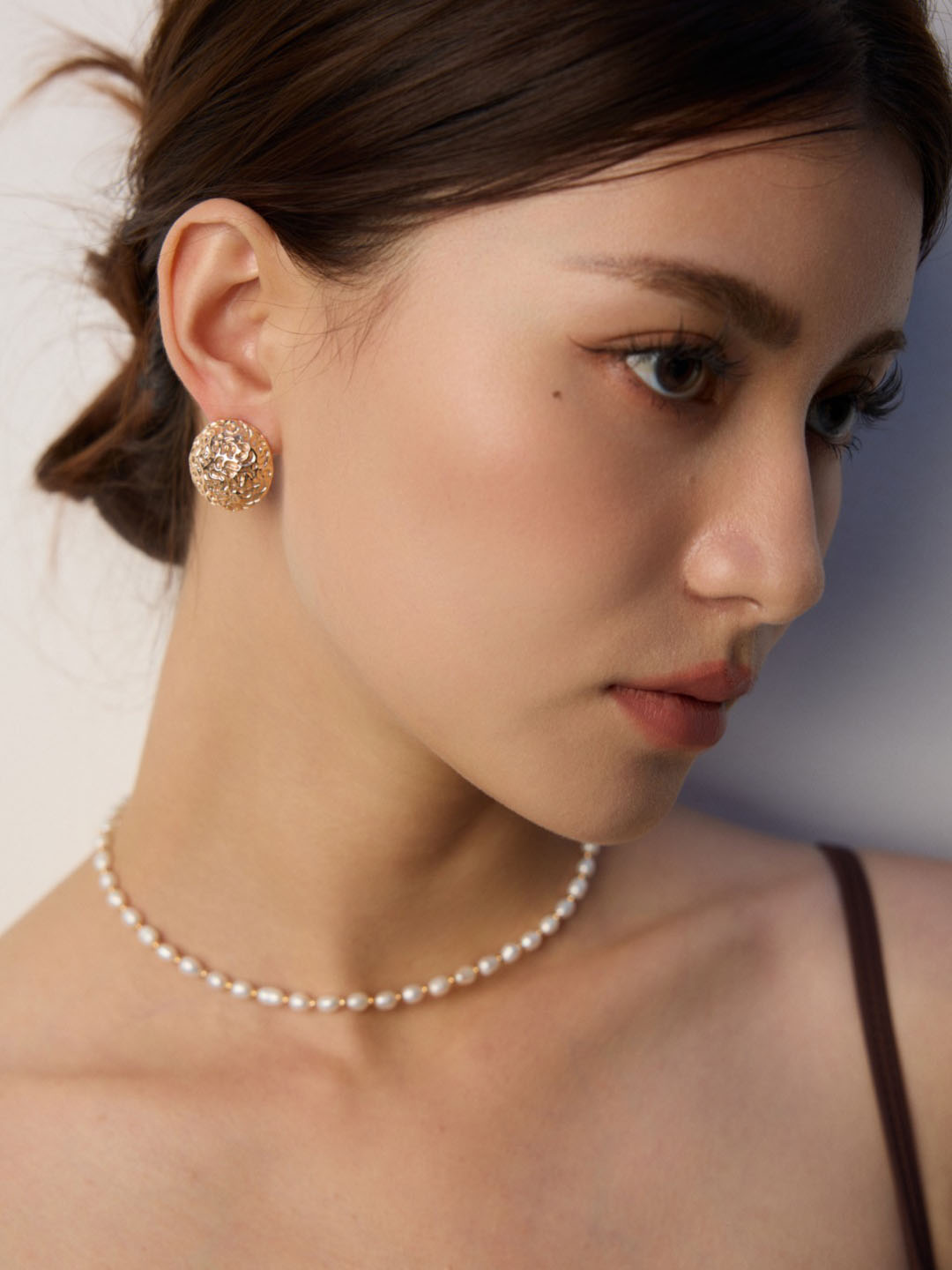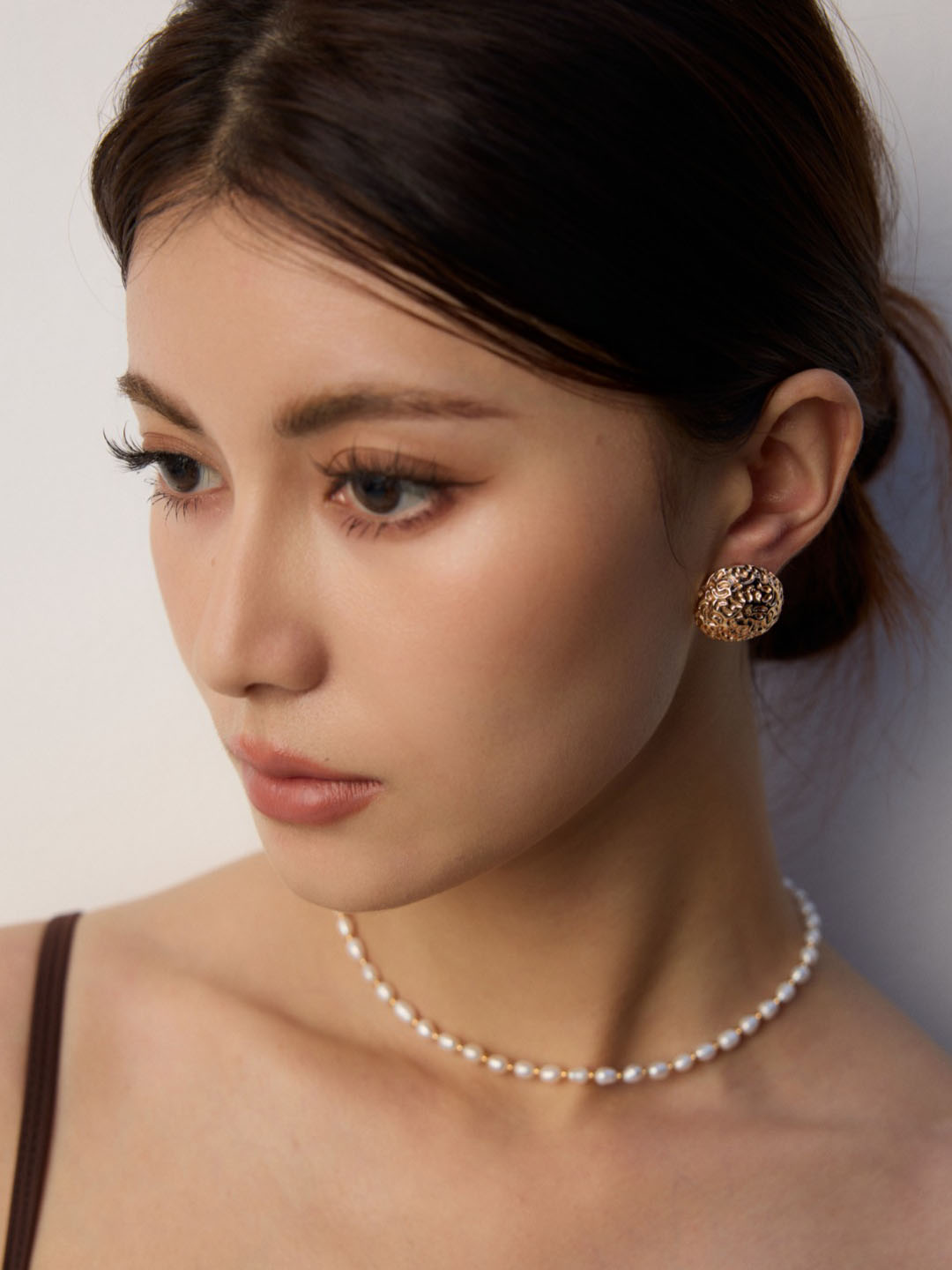 These earrings suit many different looks. For casual outfits, they provide an artistic edge to simple clothing. With professional attire, they add confidence and refinement. At evening gatherings, the textured spheres glow beautifully under soft light. Moreover, the bold design pairs well with minimalist rings or sleek necklaces, balancing modern style with natural inspiration. Therefore, they work for both statement seekers and subtle stylists.