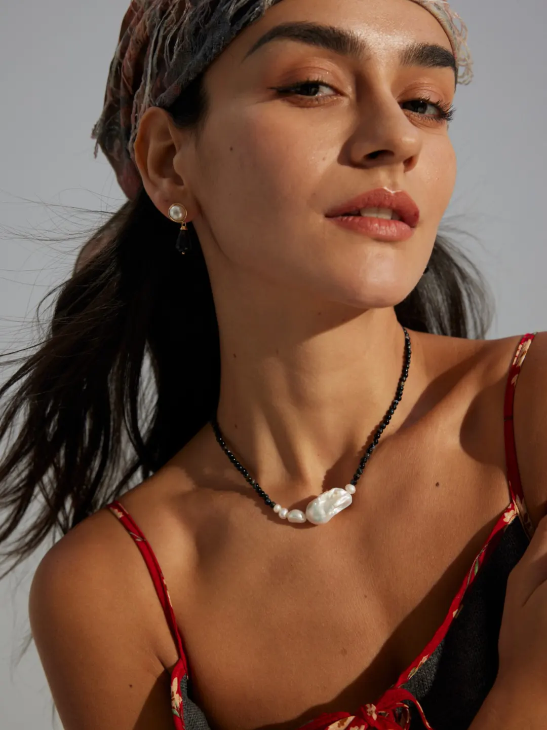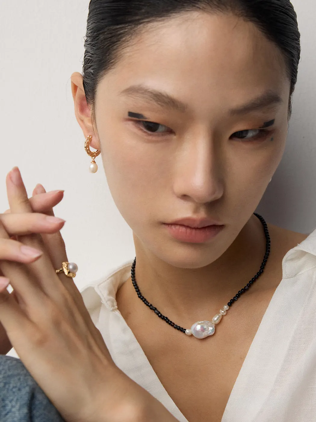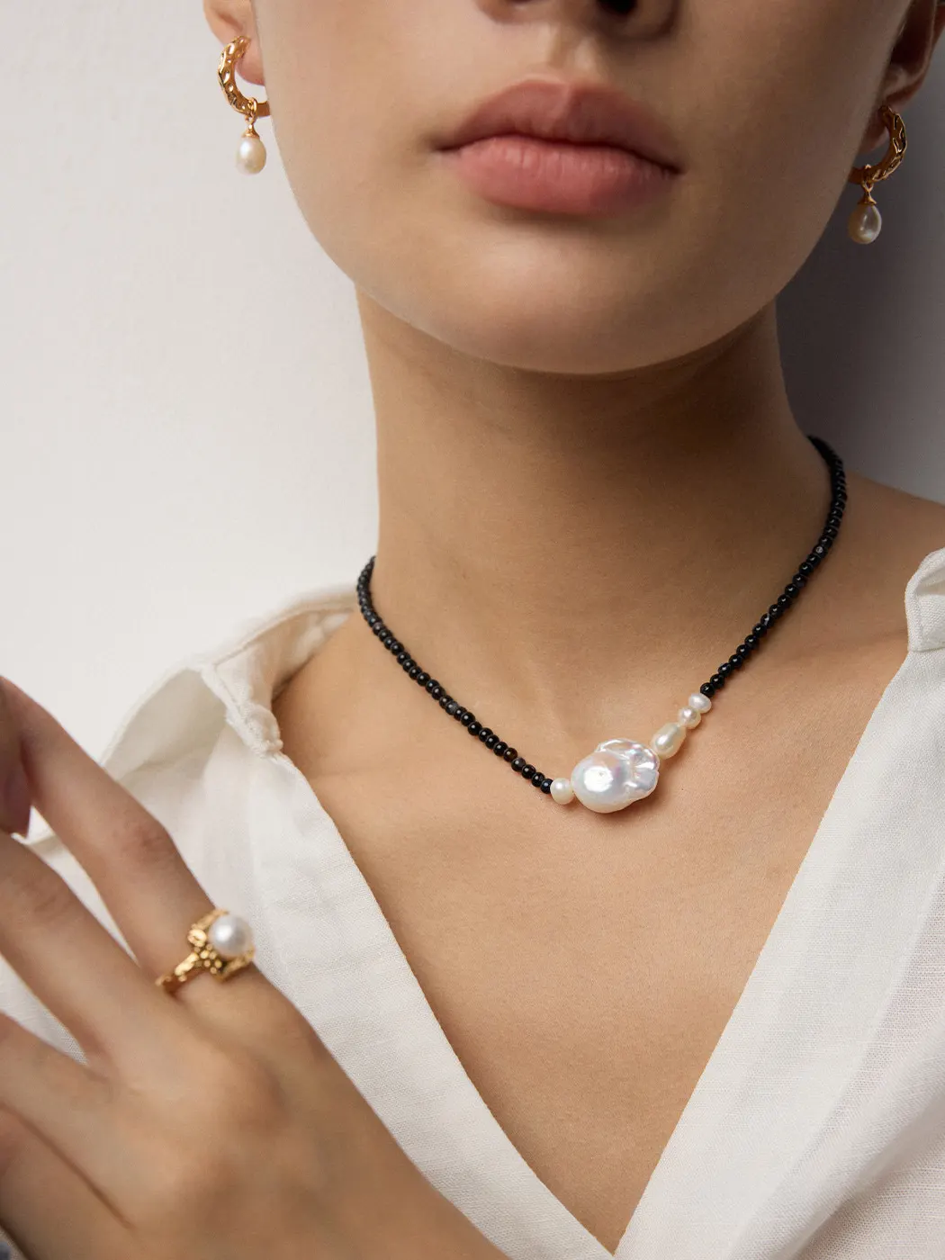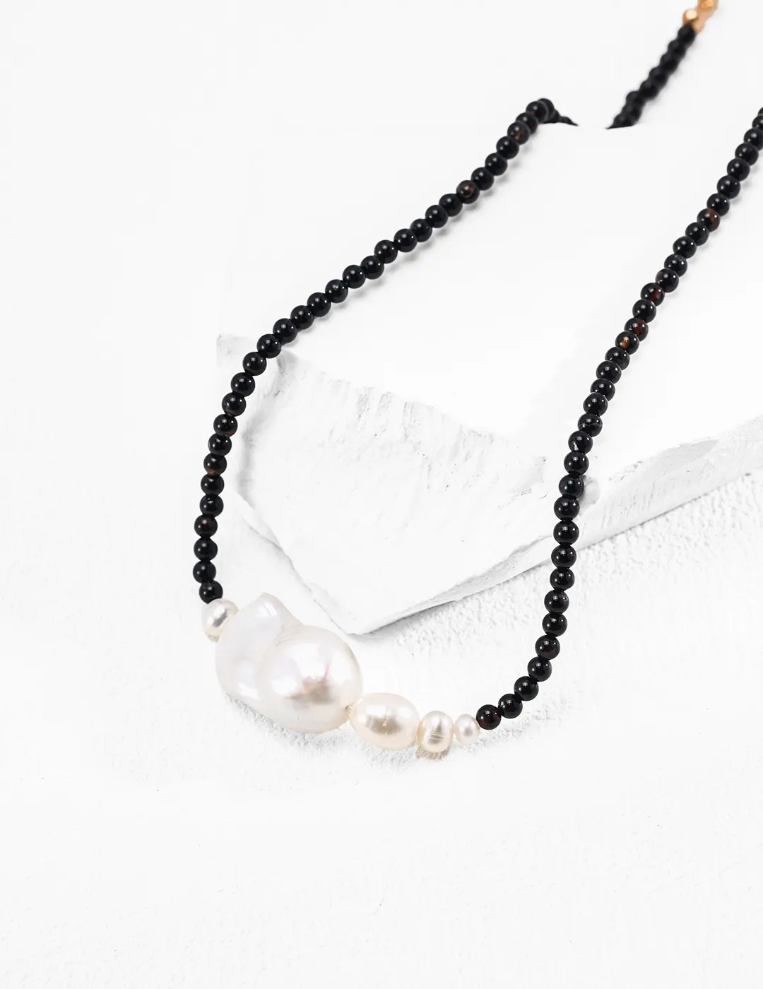 This necklace works effortlessly across styles. For casual wear, it adds edge to simple tops or monochrome outfits. Moreover, it elevates office attire with dramatic contrast and subtle luxury. At night, the iridescence of the pearl pairs beautifully with black dresses or bold fabrics. In addition, it layers well with slim gold or gemstone necklaces for a curated, fashionable stack. Consequently, it becomes a versatile piece for modern jewelry styling.