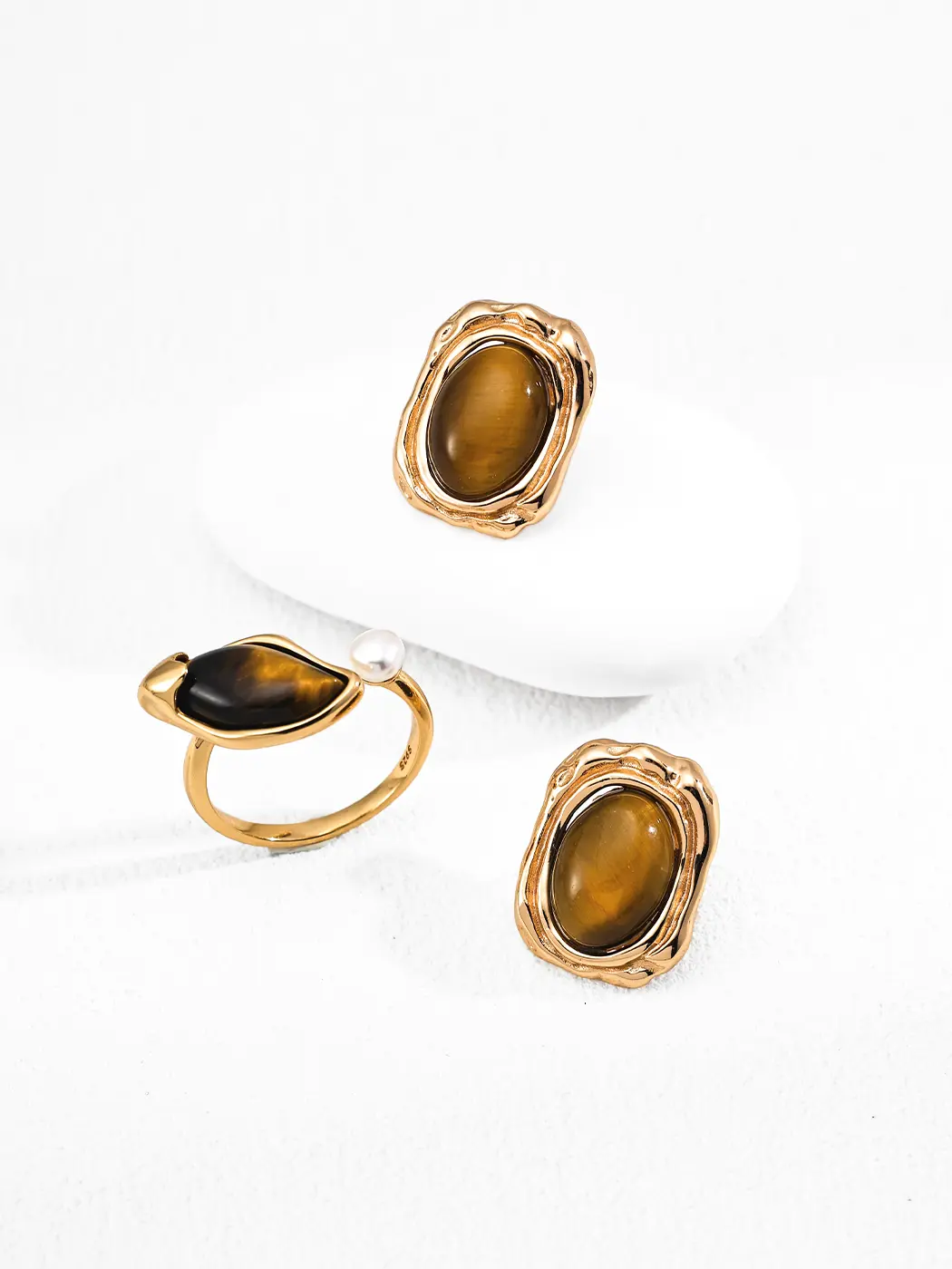 You pair this ring with soft neutral tones for a serene and balanced look. You also match it with gold bracelets or thin stacking rings for a more curated style. Because the tiger eye carries natural warmth, it works beautifully with beige, brown, green, and ivory outfits. Meanwhile, the pearl adds a refined touch that suits more formal clothing. You can wear this ring alone as a statement piece or combine it with delicate jewelry for subtle layering.