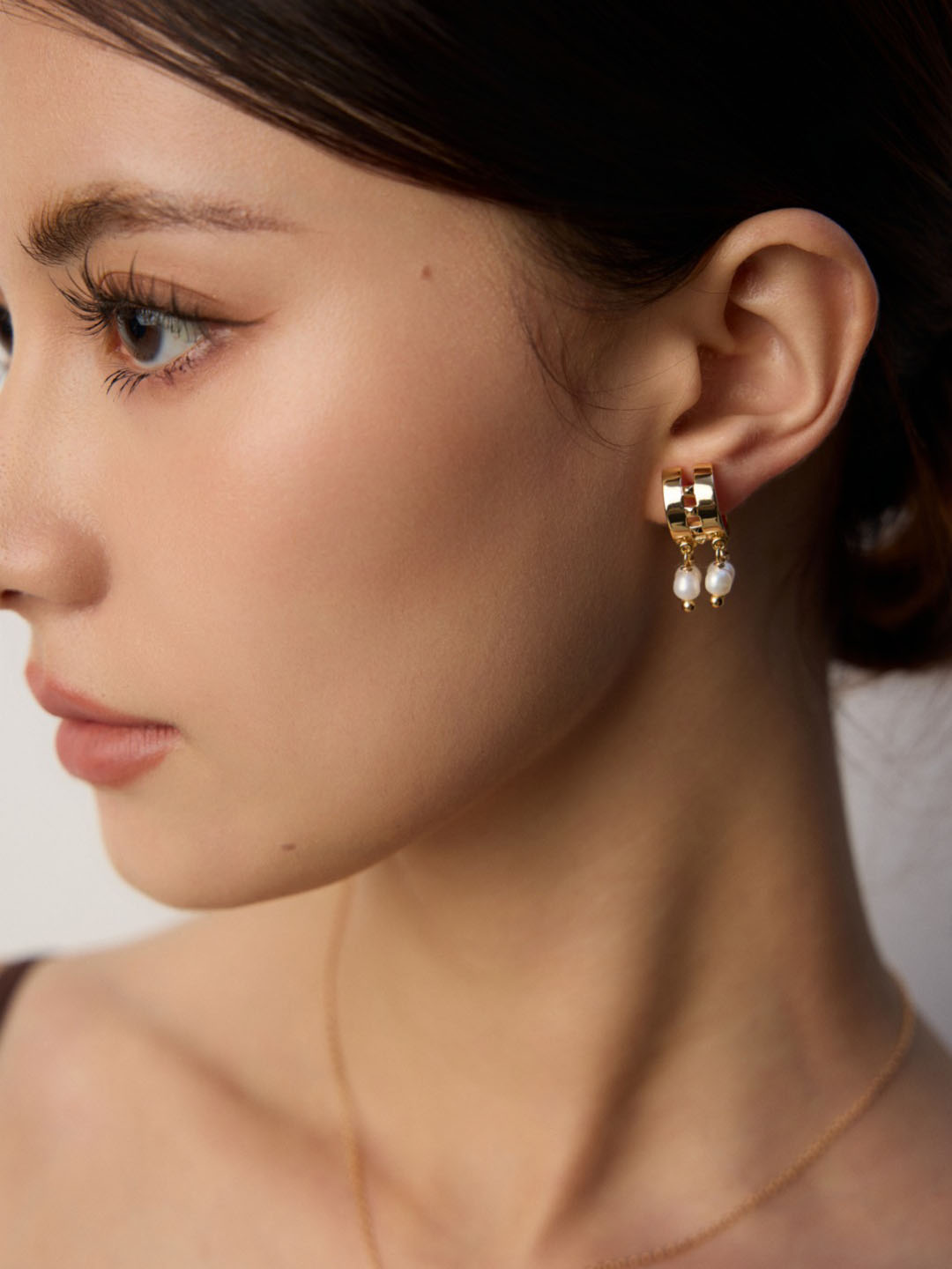 Artisans craft these earrings from high-quality S925 sterling silver. The piece is available in vintage gold or bright platinum finishes. In addition, the arcs are polished for smooth edges and long-lasting shine. The natural pearls bring subtle radiance and balance to the bold arcs. Consequently, the materials combine strength, beauty, and durability.