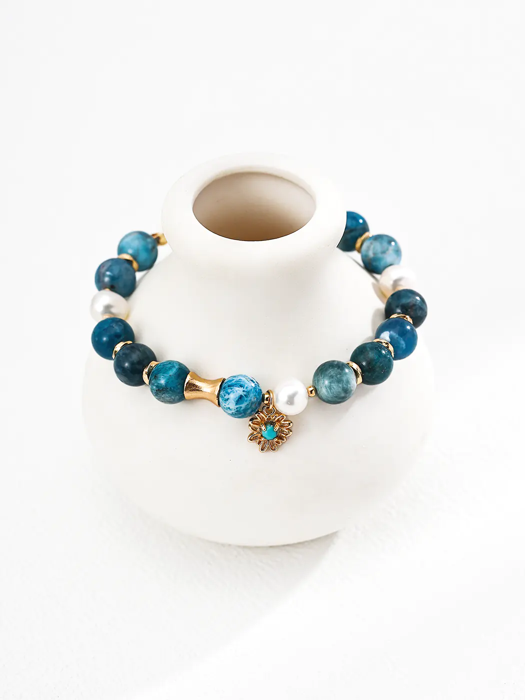• Bead sizes: 8 mm azurite, 7 mm pearl