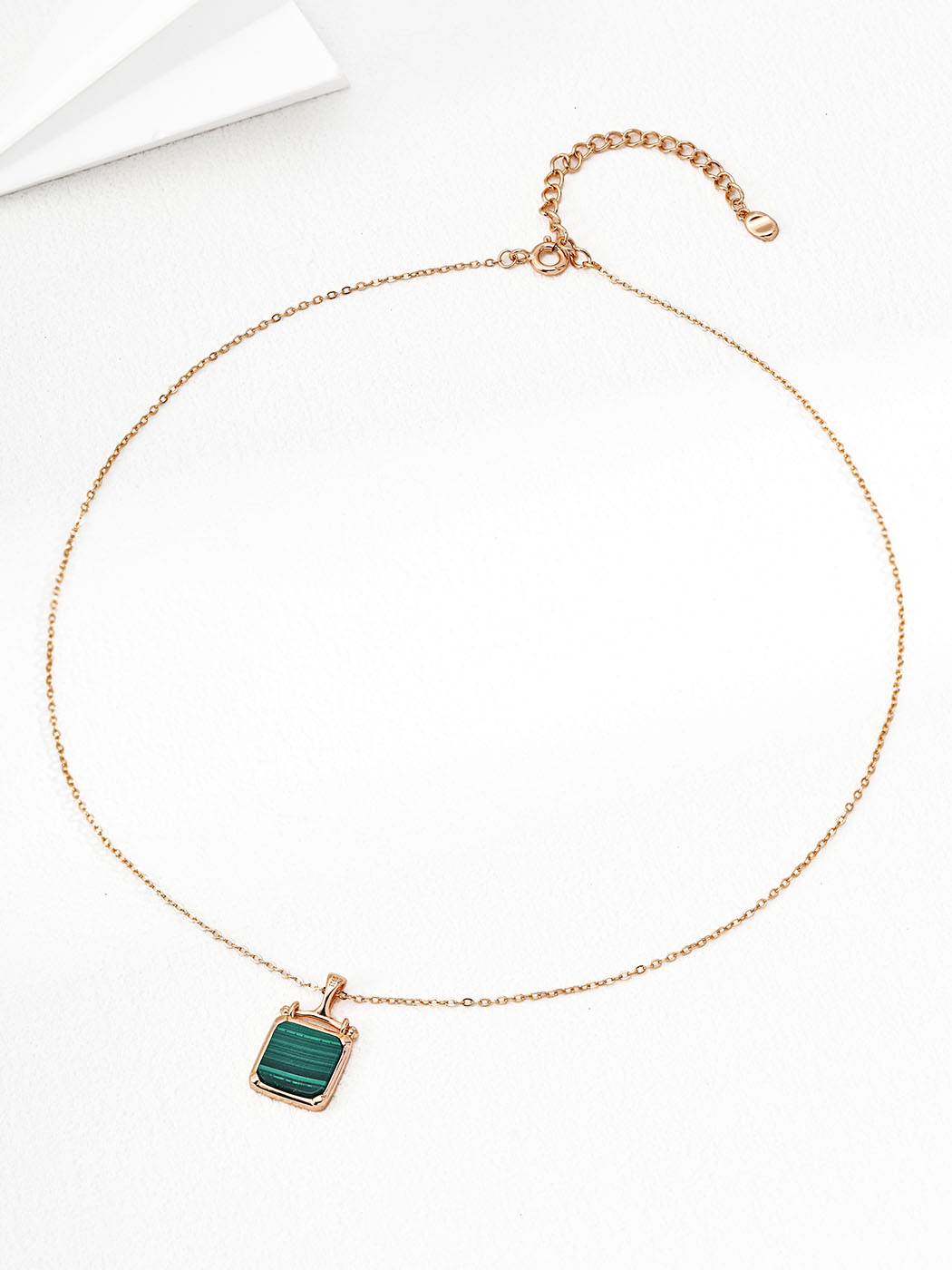 - Distinctive cube-inspired pendant with natural malachite
