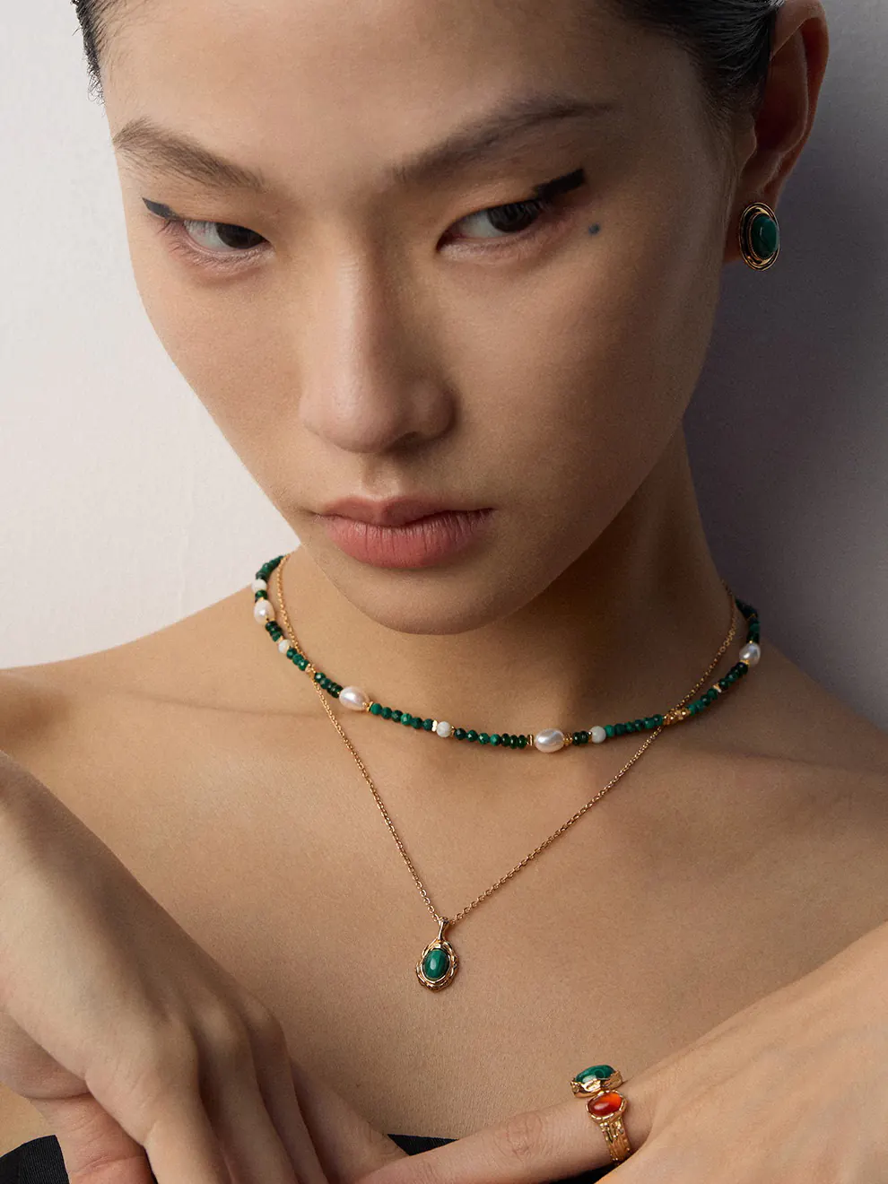 This necklace adapts easily to various looks. For casual wear, it adds a natural pop of green to simple tops or dresses. Moreover, it enhances business attire by introducing a subtle yet elegant detail. During evenings, it glows beautifully against black, white, or deep jewel-toned fabrics. In addition, it layers effortlessly with minimalist gold chains for a modern, curated style. Consequently, it becomes a versatile accessory suitable for many fashion moods.