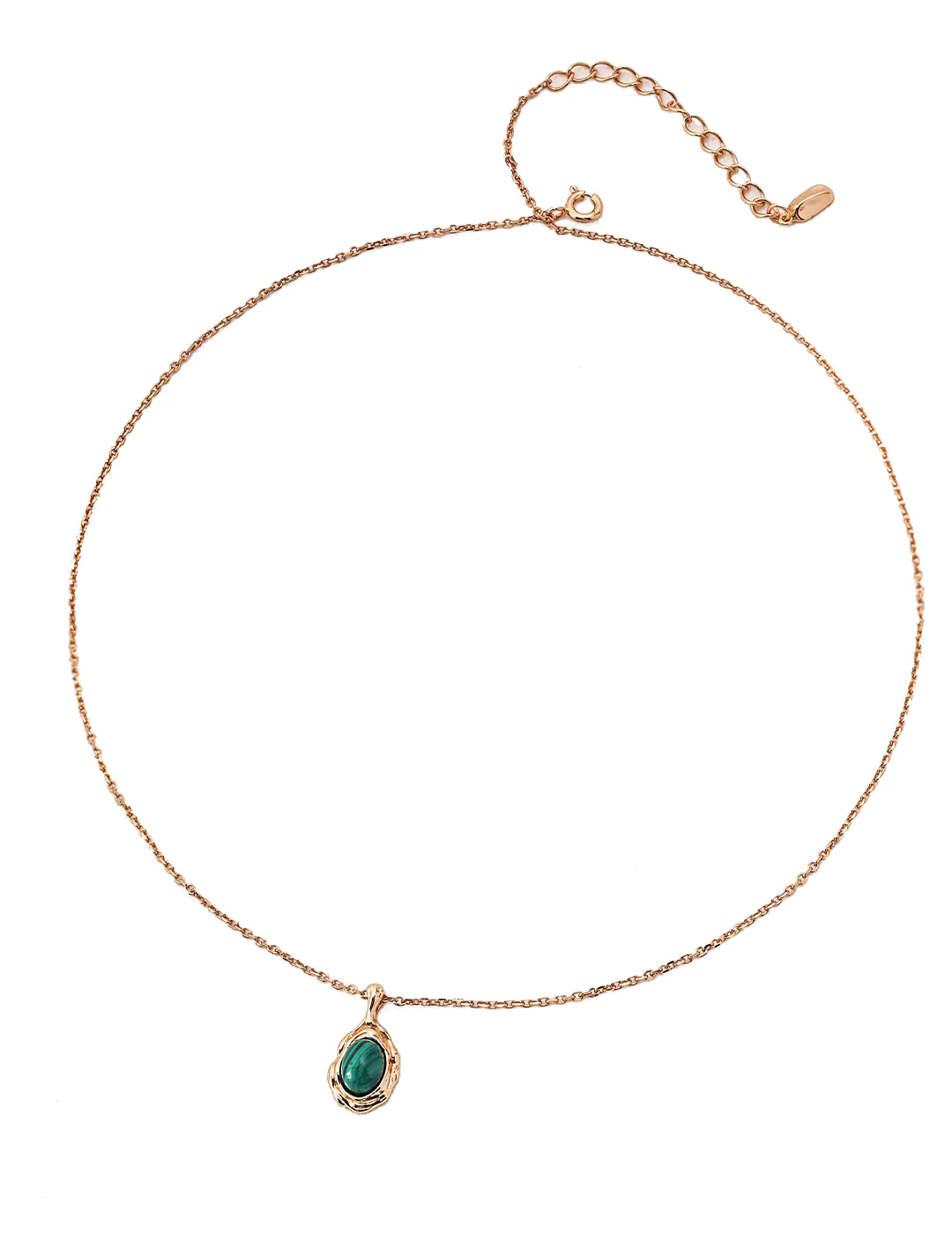 The Emerald Vein Malachite Pendant brings natural elegance and refined artistry together. The design features a vivid oval malachite stone framed in a vintage gold-plated setting. Moreover, the green stone displays unique vein patterns that resemble flowing rivers or hidden emerald paths. The delicate sterling silver chain provides balance, while the extender allows flexible wear. As a result, the necklace feels lightweight yet striking.