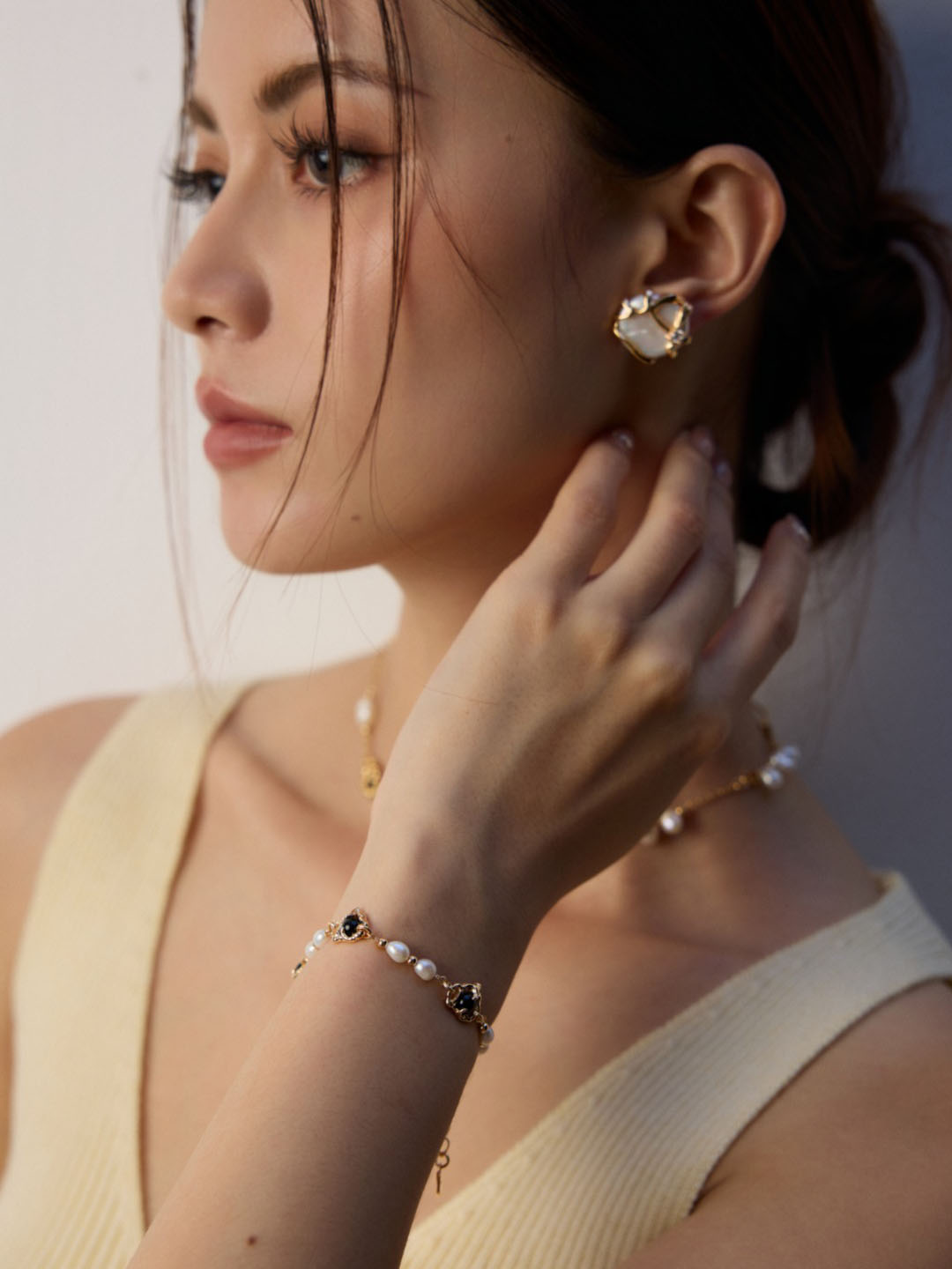 Perfect for everyday wear, yet also ideal for special celebrations. They work beautifully for birthdays, anniversaries, or romantic dinners. Because of their symbolic design, they represent harmony, fortune, and positive energy. Ultimately, the flowing water pearl studs bring together artistry, natural gemstones, and modern elegance, offering a meaningful accessory for every jewelry lover.