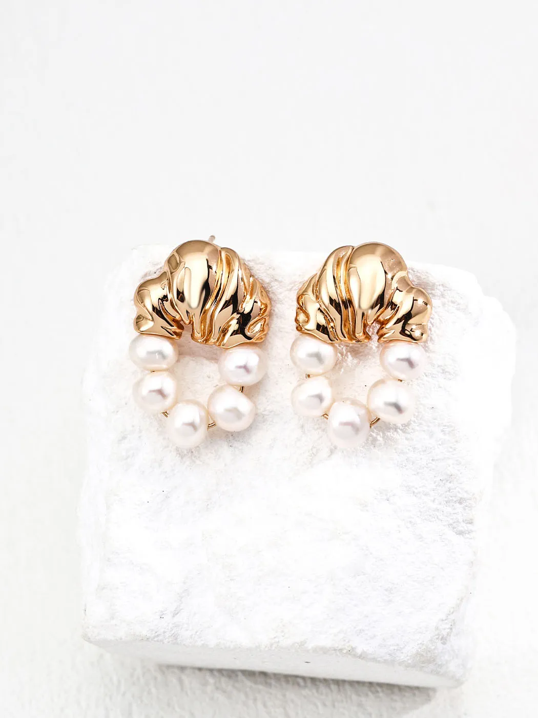Handcrafted from premium S925 sterling silver, these earrings are plated in warm vintage gold for durability and glow. In addition, each earring includes smooth freshwater pearls that reflect light beautifully. Consequently, the combination of sculptural wave metal and natural pearls creates a sophisticated design. Furthermore, the secure stud closure ensures comfort and stability during wear.