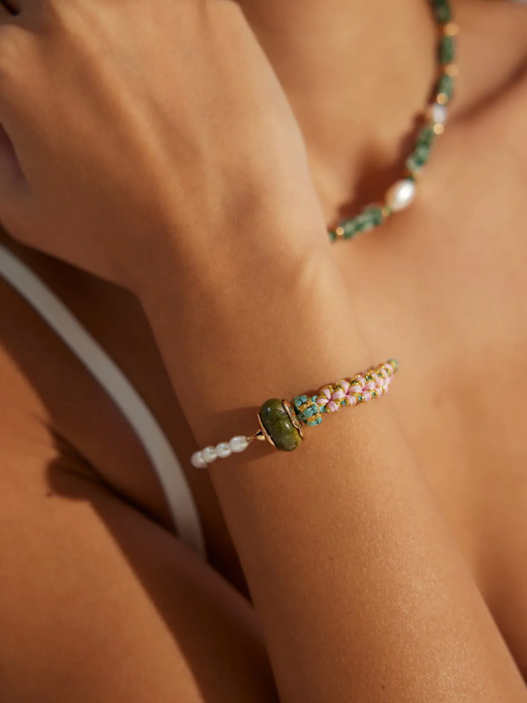 This bracelet transitions easily from casual outings to professional meetings and evening events. It makes a thoughtful gift for birthdays, anniversaries, or personal milestones. The mix of jade, pearls, and artisanal weaving gives it both symbolic meaning and versatile appeal. The bracelet represents harmony and individuality, making it a treasured piece in any jewelry collection.