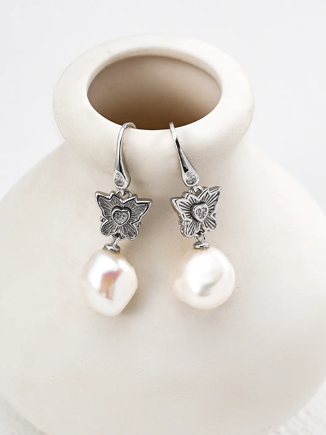 These earrings use premium S925 sterling silver with optional 18K gold plating. Additionally, each natural pearl displays a smooth luster and unique organic shape, ensuring no two earrings look identical. Jewelers crafted the butterfly design with fine details to highlight its elegance. As a result, the Luminous Butterfly Pearl Drops unite artistry, strength, and natural beauty. Furthermore, the secure hook ensures comfort and stability for all-day wear.