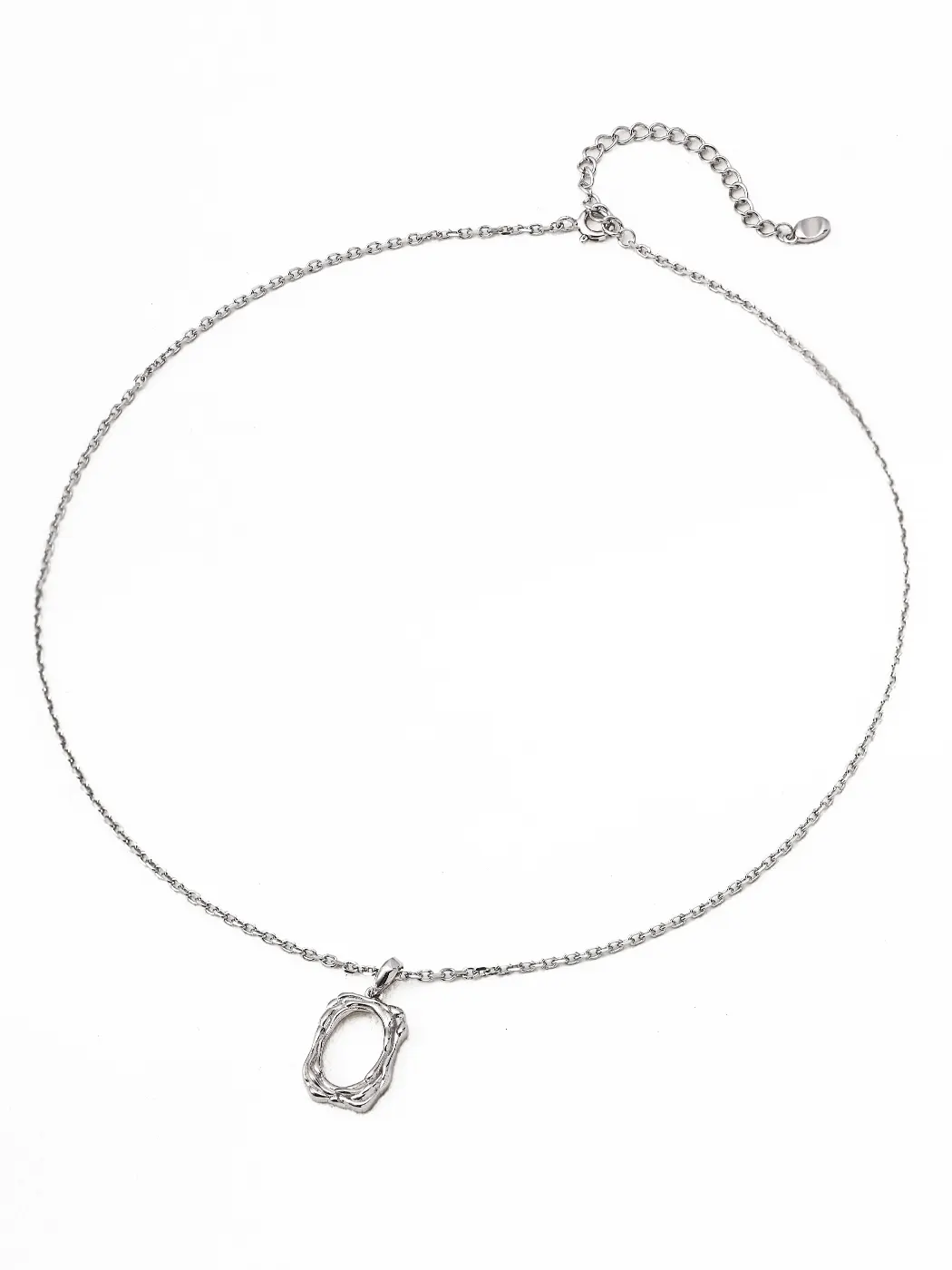 This minimalist silver pendant necklace showcases a sleek, 2 cm tall pendant suspended from a 40 cm chain with a 6 cm extender.