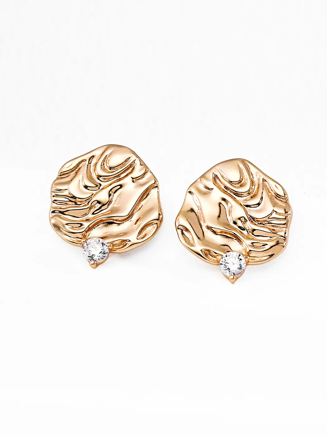 These earrings suit minimal outfits instantly, and they also add interest to clean necklines and soft fabrics. The rippled texture pairs well with simple gold or silver chains, and the zircon works nicely with layered looks. Moreover, the design fits creative, elegant, and understated wardrobes. You can wear them with monochrome sets for a modern finish, or you can style them with soft knits to enhance the reflective qualities of the metal. Because the shape feels organic, the earrings complement both short hairstyles and relaxed updos.