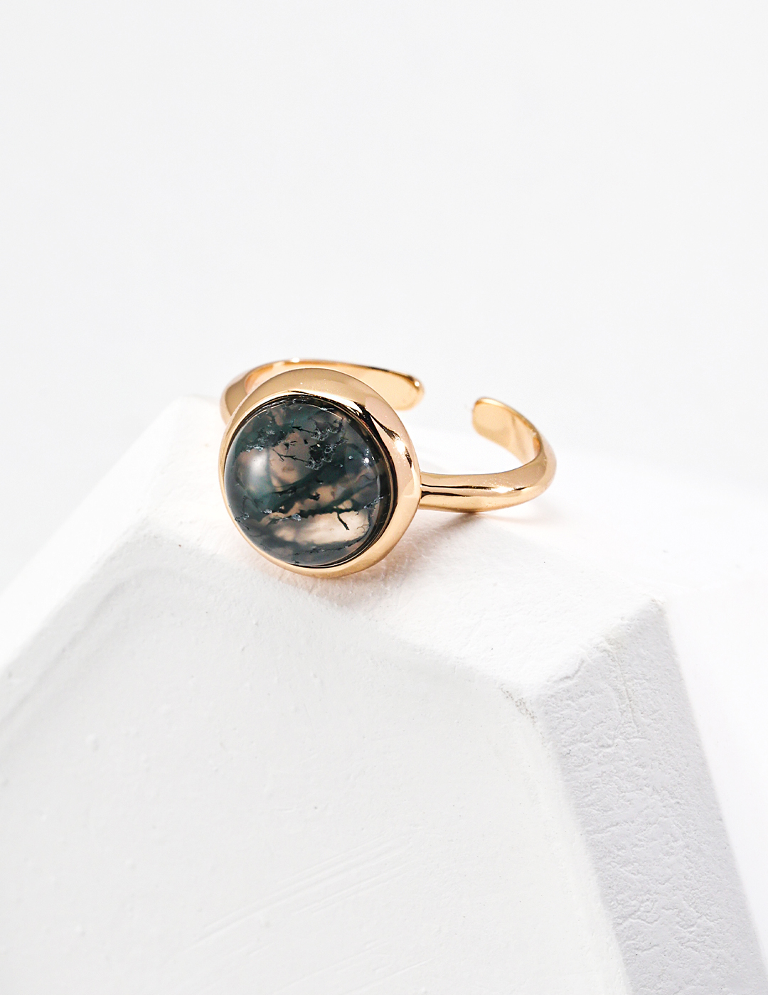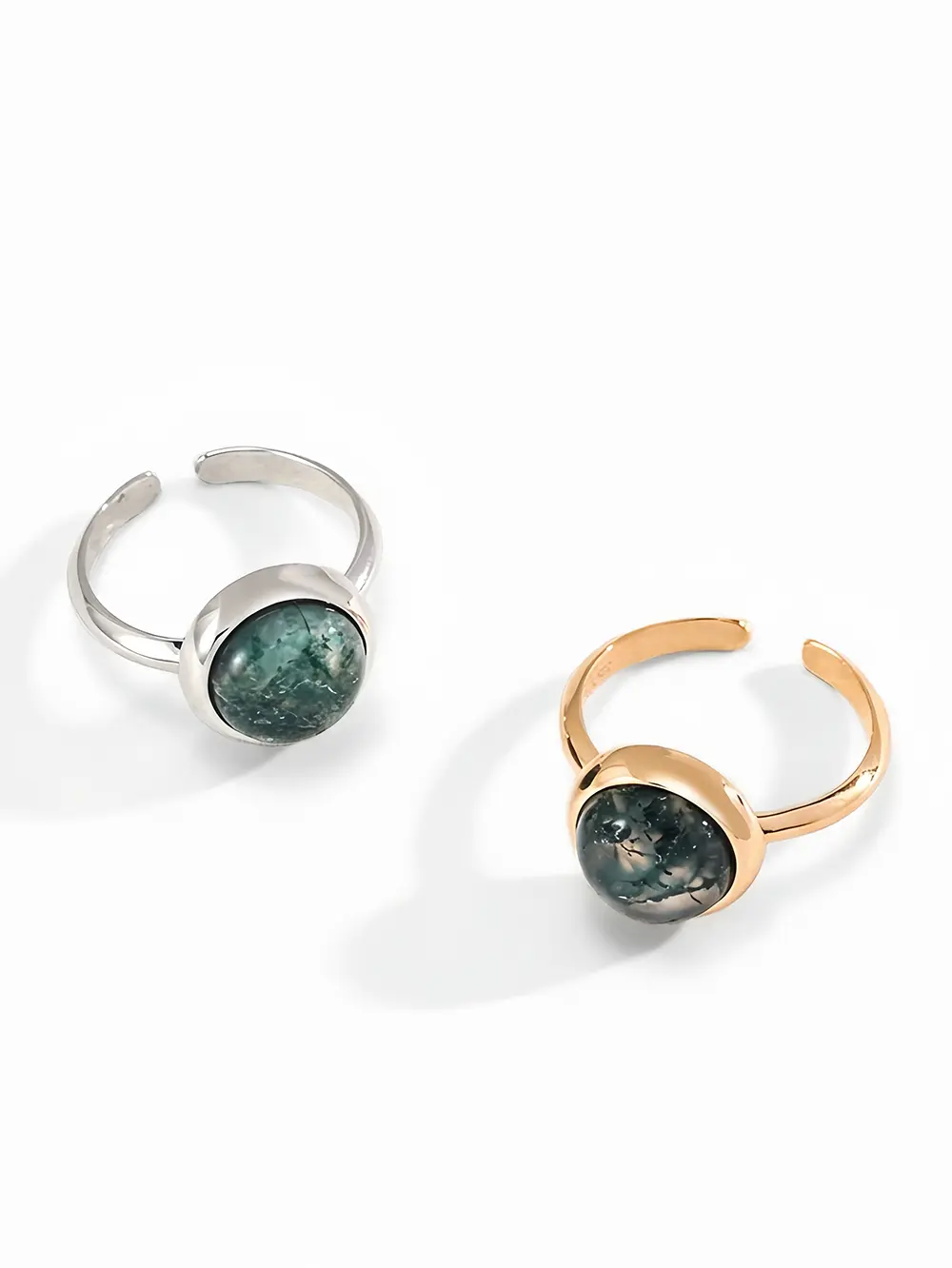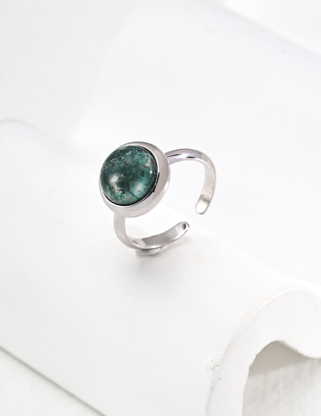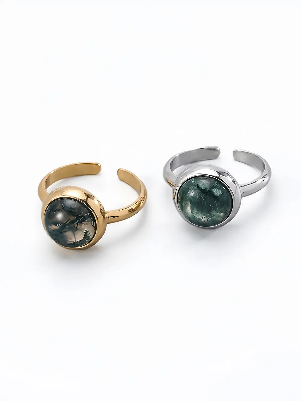 - Natural 1 cm moss agate with captivating “moss” inclusions—each ring one-of-a-kind