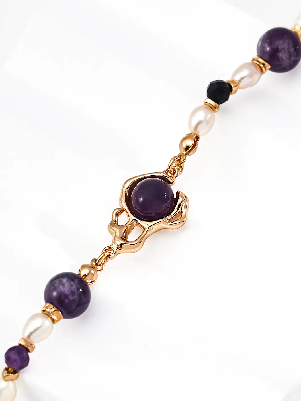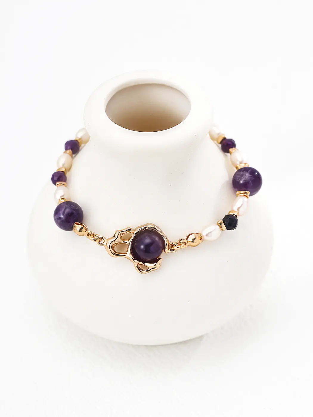 - Features natural pearls (4 × 6 mm) and amethyst stones (8 mm, 4 mm)