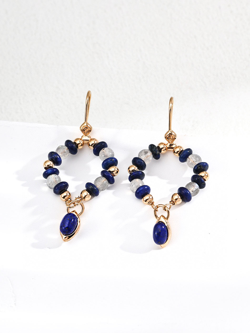 For casual wear, pair these earrings with linen dresses or denim for natural elegance. Additionally, in office settings, they bring a subtle pop of blue that complements neutral blazers. During evenings, the moonstone glow and lapis depth enhance darker fabrics or flowing gowns. Furthermore, they layer beautifully with slim gold chains or gemstone bracelets for a curated look. Because of their versatile design, the earrings adapt seamlessly to both modern and bohemian-inspired wardrobes.