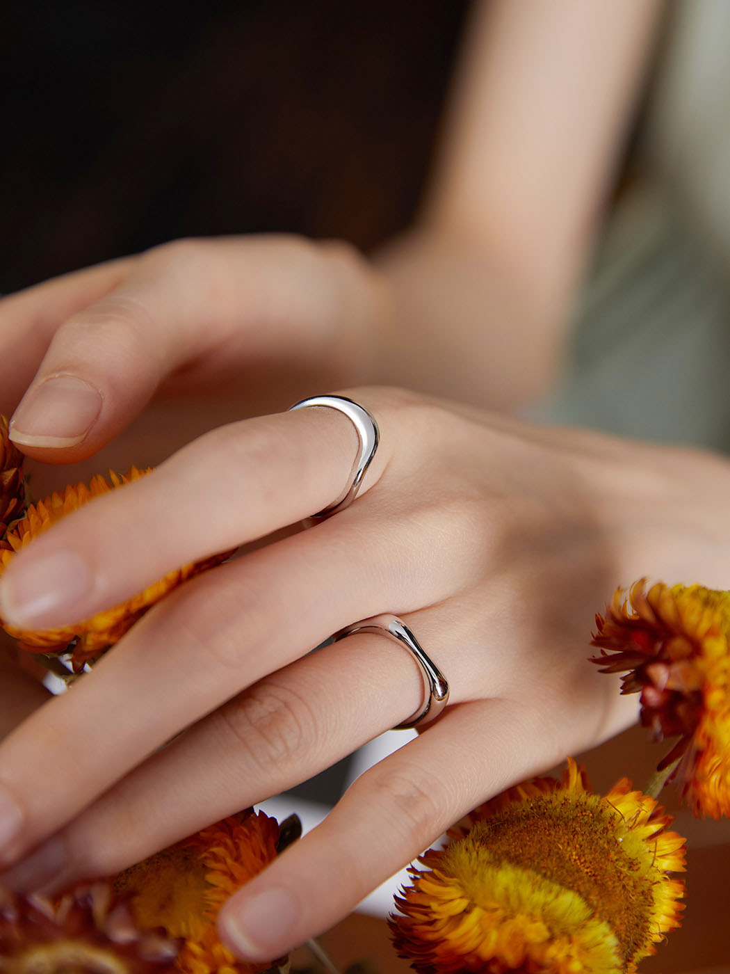 Crafted from premium S925 sterling silver, the band measures about 2 mm in width. Its open structure fits US sizes 7 to 11, allowing flexibility for different fingers. The silver base ensures durability, while the polished finish creates a radiant glow. In addition, the design comes in both gold-plated and silver options, offering versatile choices. Each ring is carefully shaped to maintain the organic curve and smooth silhouette.
