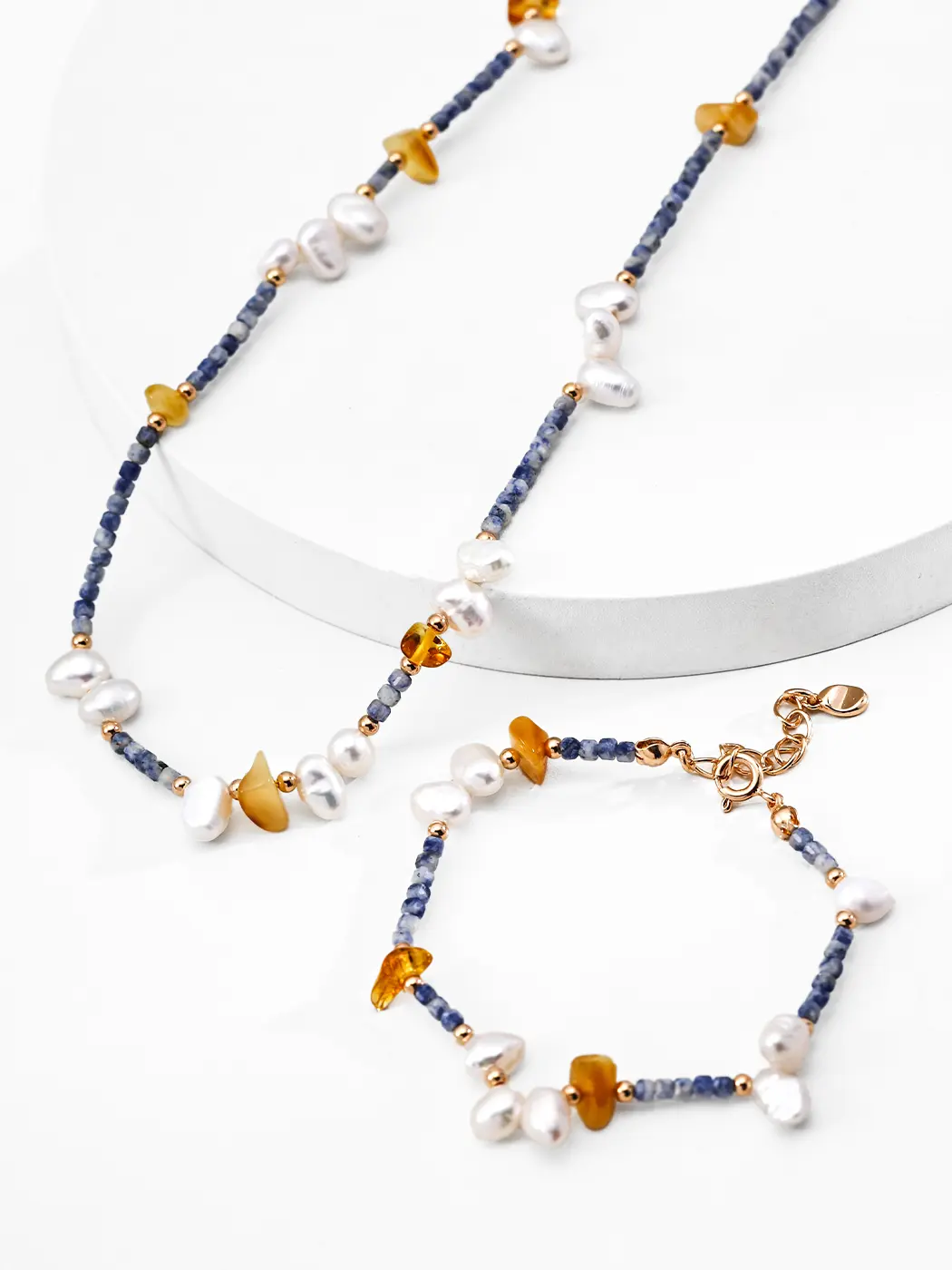 Handcrafted from premium S925 sterling silver with vintage-gold plating, this bracelet balances durability and sophistication. Freshwater pearls bring timeless radiance, sodalite offers rich midnight tones, and beeswax adds warm golden hues—together creating a piece full of natural charm and boho elegance.