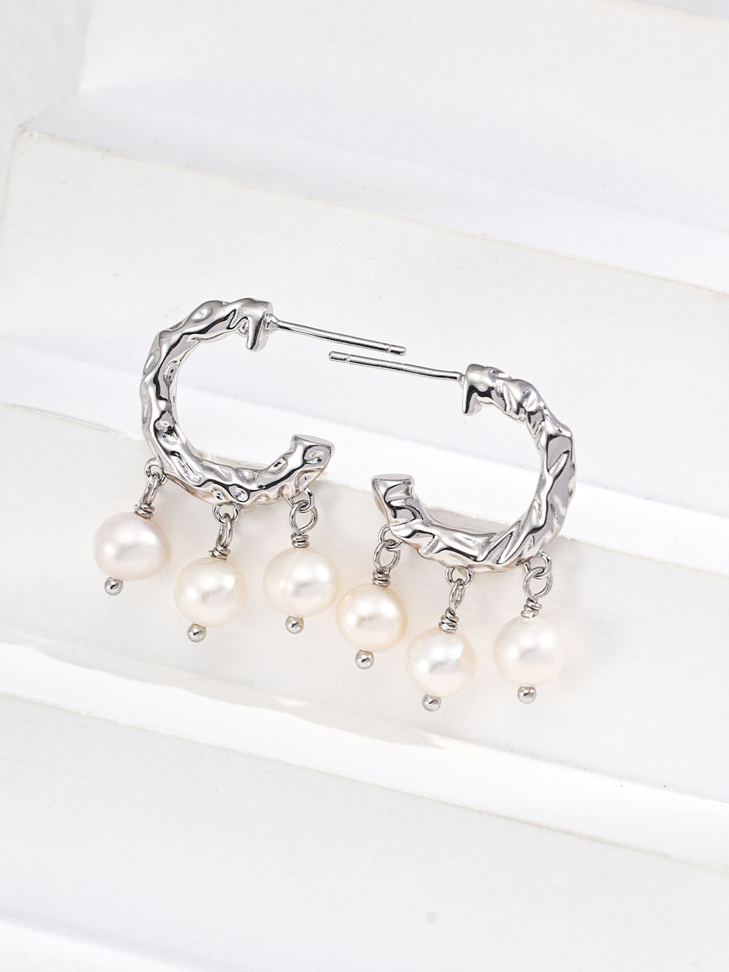• Features three natural pearls on each hoop, approx. 6 mm each