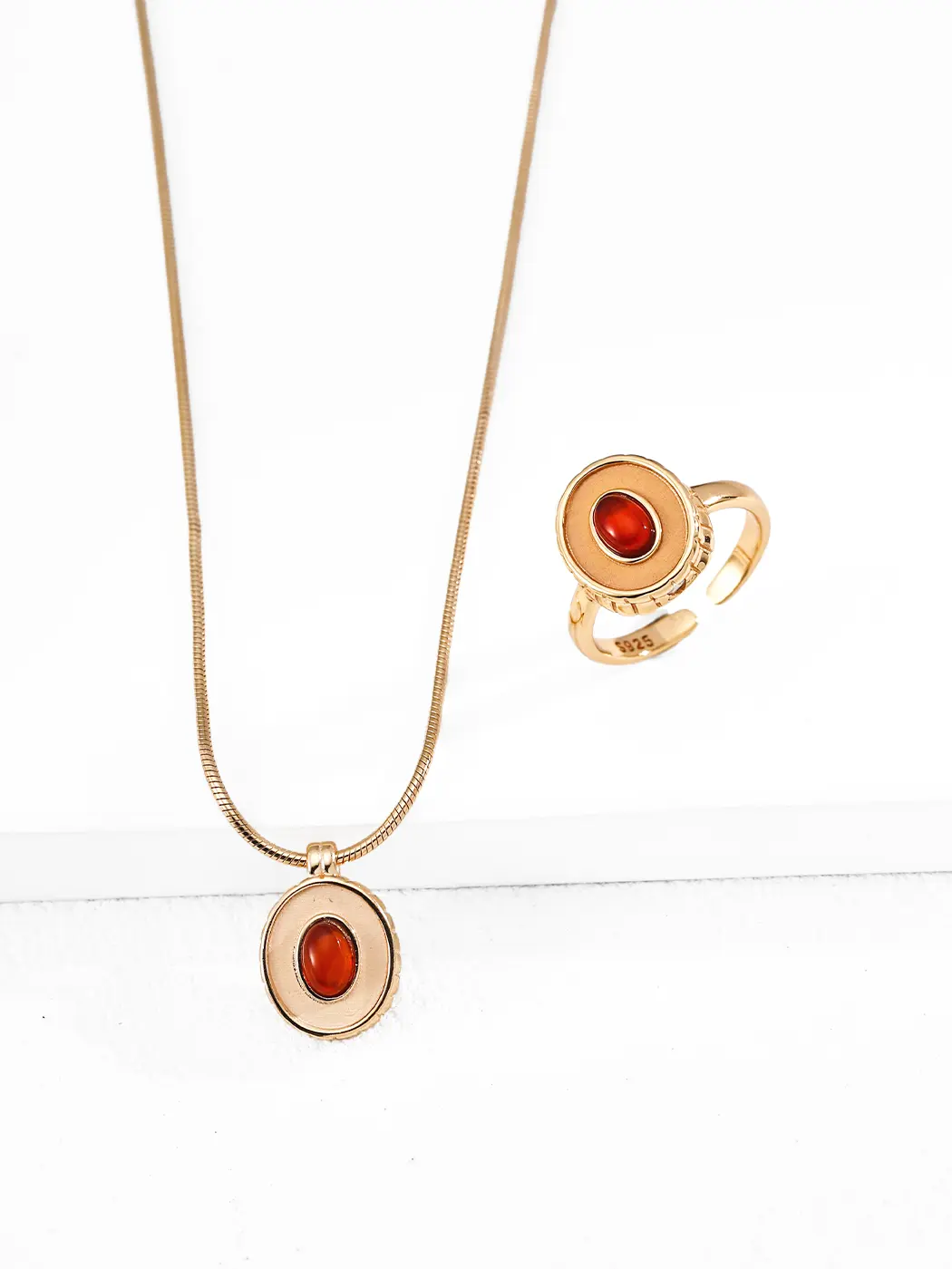 Red Agate Kernel Pendant Necklace in Sterling Silver