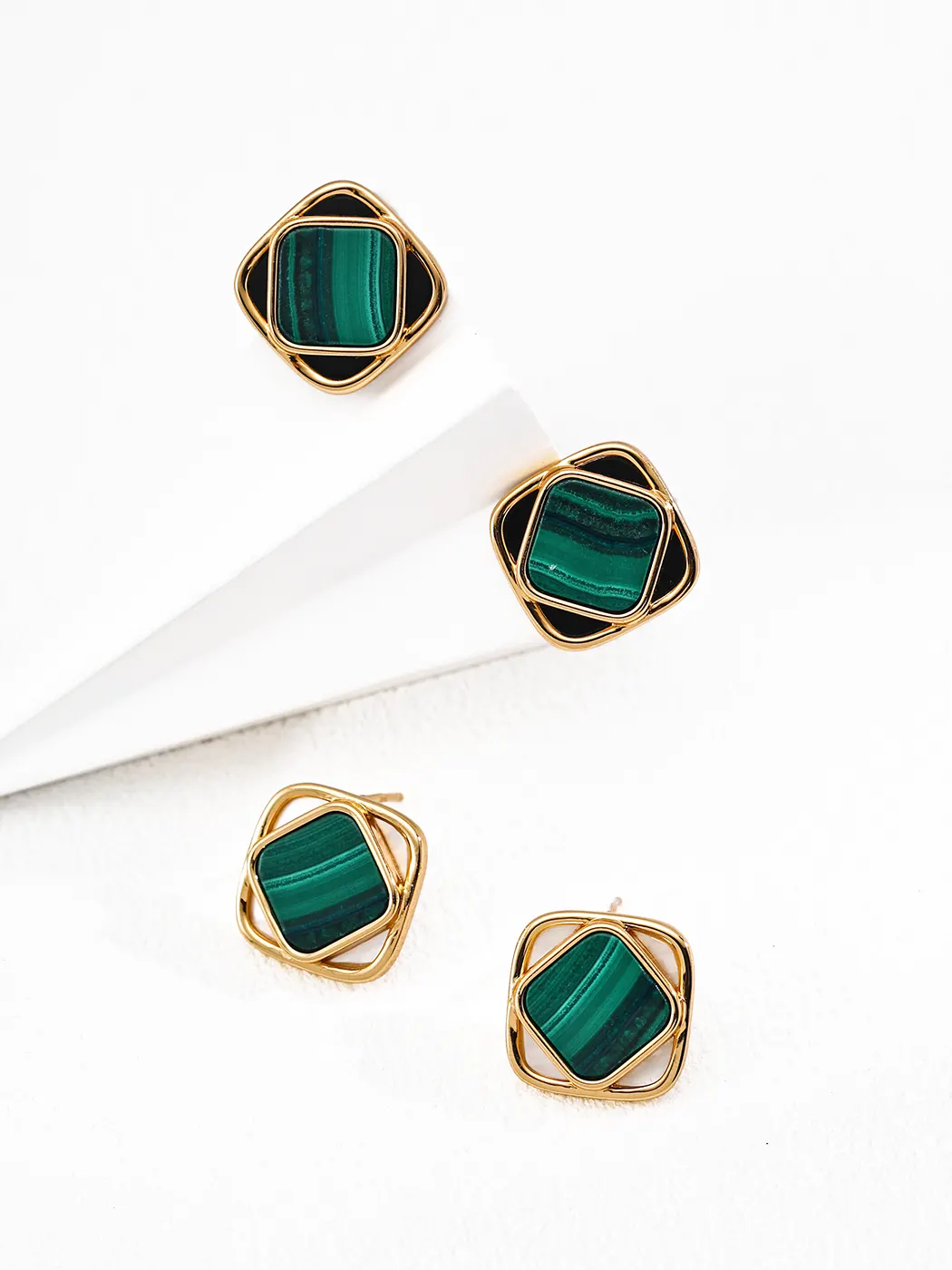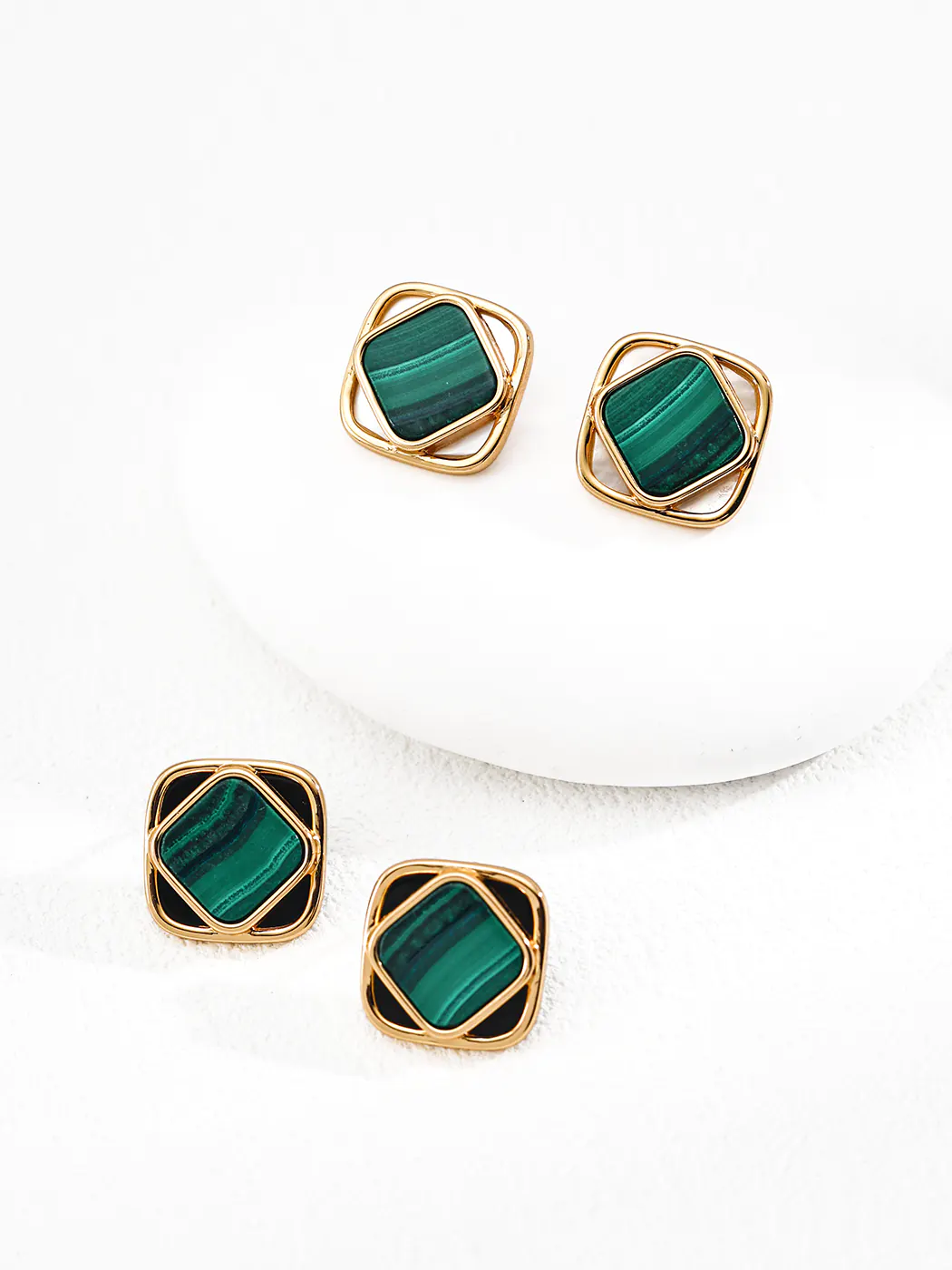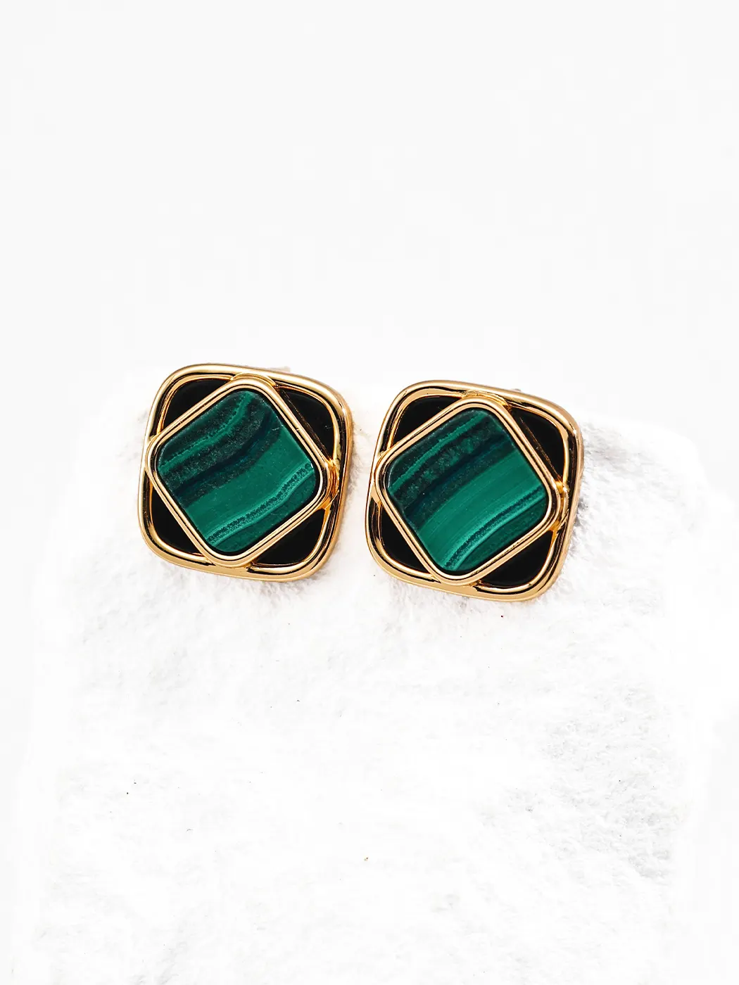 With their blend of artistry and symbolism, these Rhombus bezel malachite earrings remain versatile, stylish, and meaningful.
