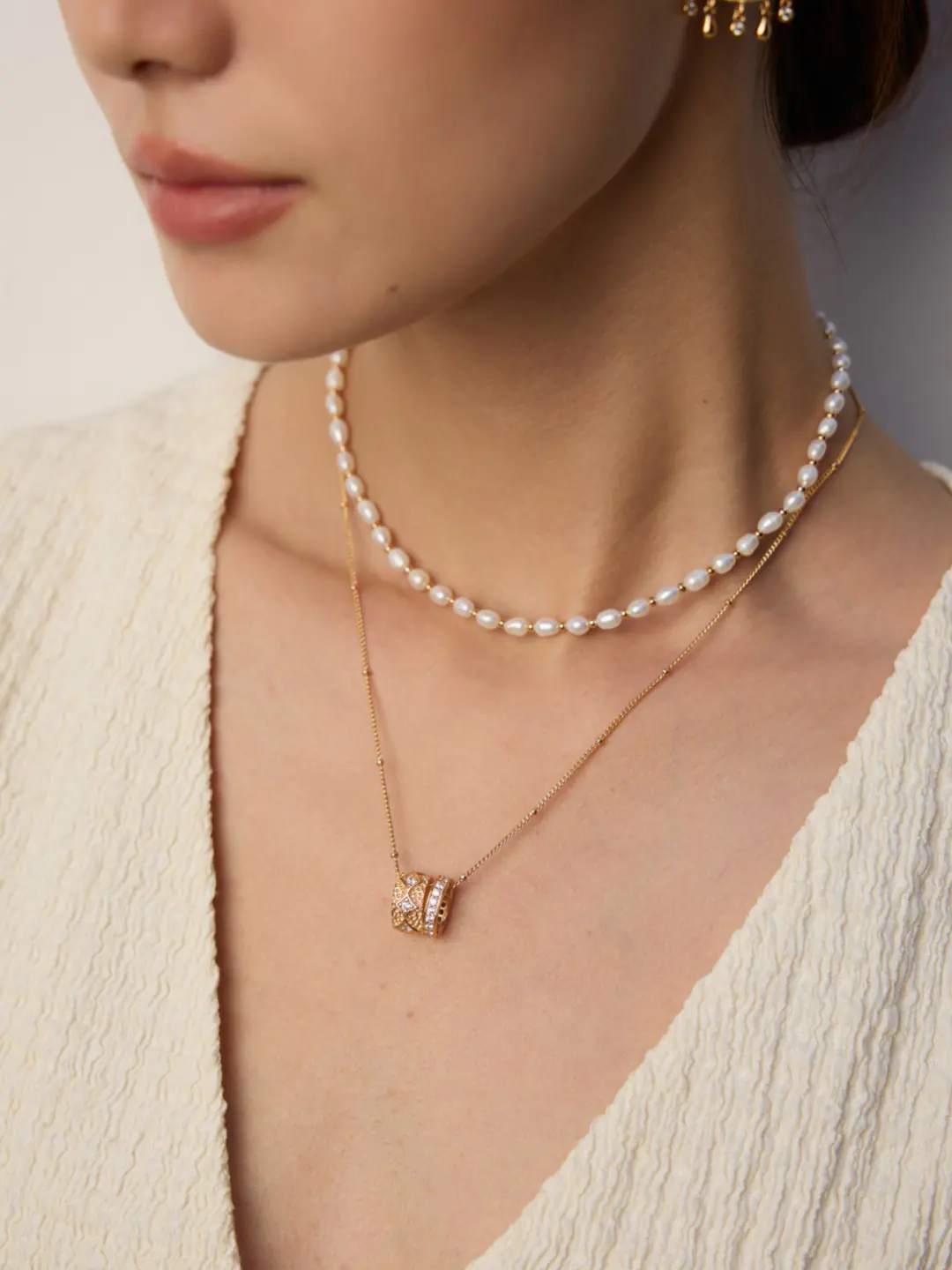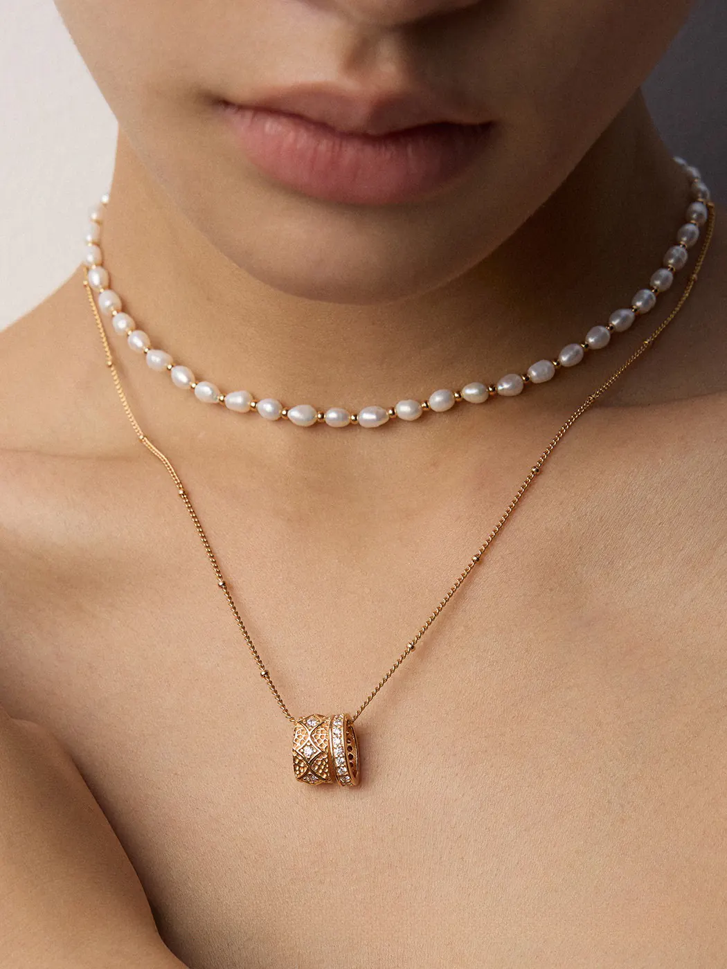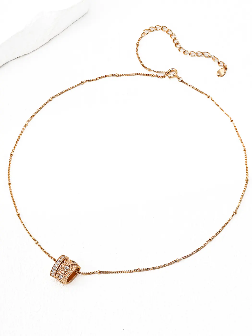 The Shimmer Band Pendant reveals elegance through its refined yet striking design. A circular pendant, layered with sculptural textures, shines with rows of cubic zirconia. Moreover, the arrangement creates a starry effect, resembling constellations condensed into jewelry. As a result, the pendant feels luminous and modern, yet it carries vintage inspiration. Its radiant glow and balanced proportions make it perfect for enhancing both casual and formal outfits.
