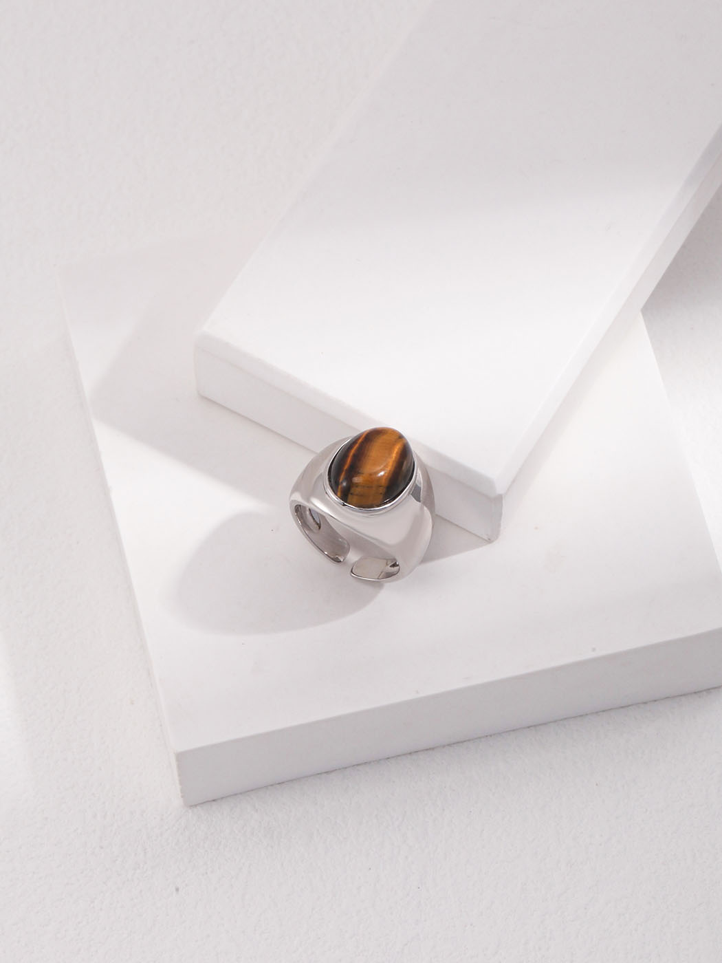Tiger eye carries a reputation for protection and grounding. Many believe its golden shimmer encourages courage and inner strength. The stone’s unique chatoyancy produces shifting bands of light, ensuring every ring looks unique. Therefore, wearing it is not just about style but also about carrying a symbol of balance and clarity.