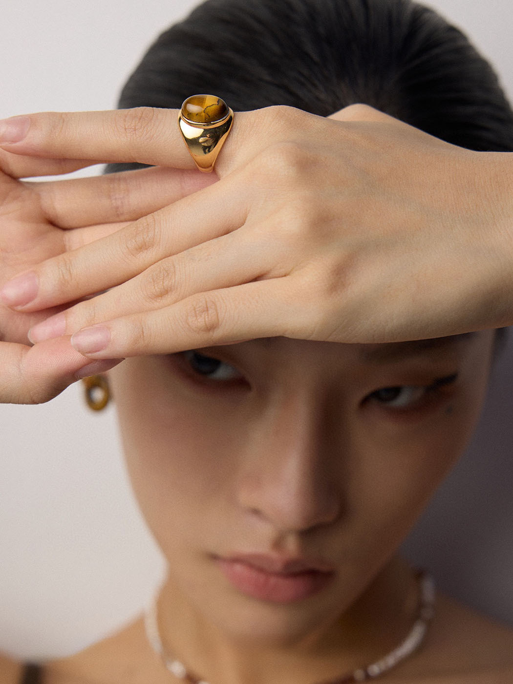 This ring makes a bold statement in any setting. For example, wear it with denim for a natural and relaxed style. On the other hand, pair it with office attire to project confidence. Finally, let its golden glow complement evening outfits, especially when matched with gold or earth-tone accessories.