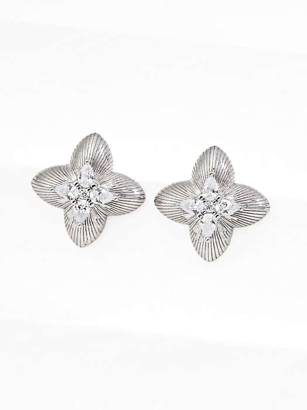 - Dainty floral stud earrings with crisp petal grooves