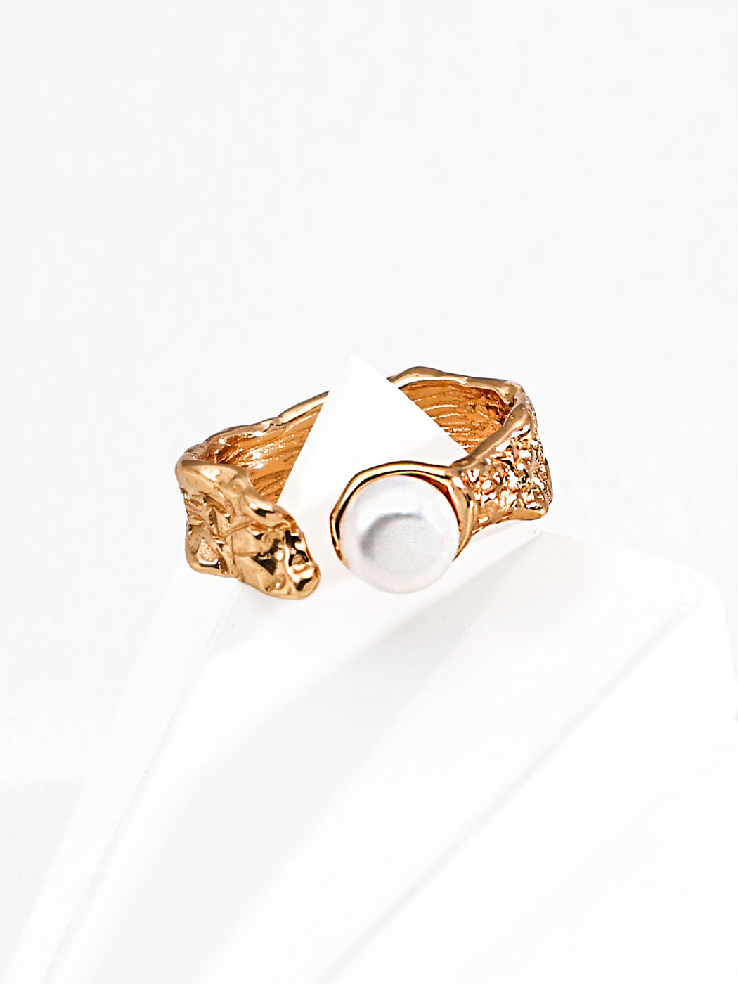 The open design allows for an adjustable fit, offering comfort and flexibility without compromising style. Every element, from the sculpted texture of the band to the smooth glow of the pearl, reflects careful craftsmanship and attention to detail.
