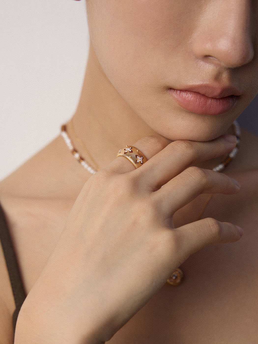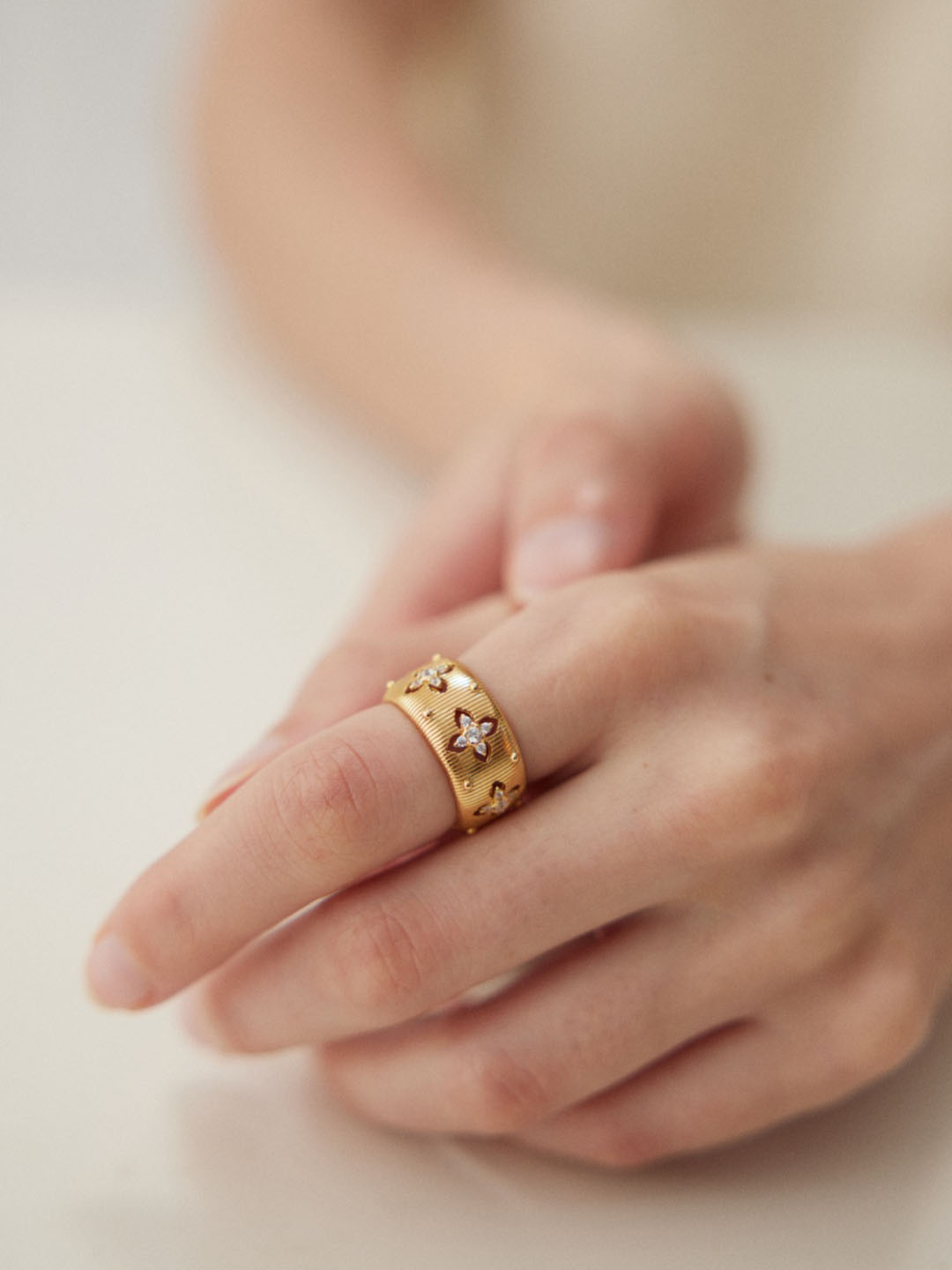 - In contrast, layering with slim bands adds a stylish stacked effect.