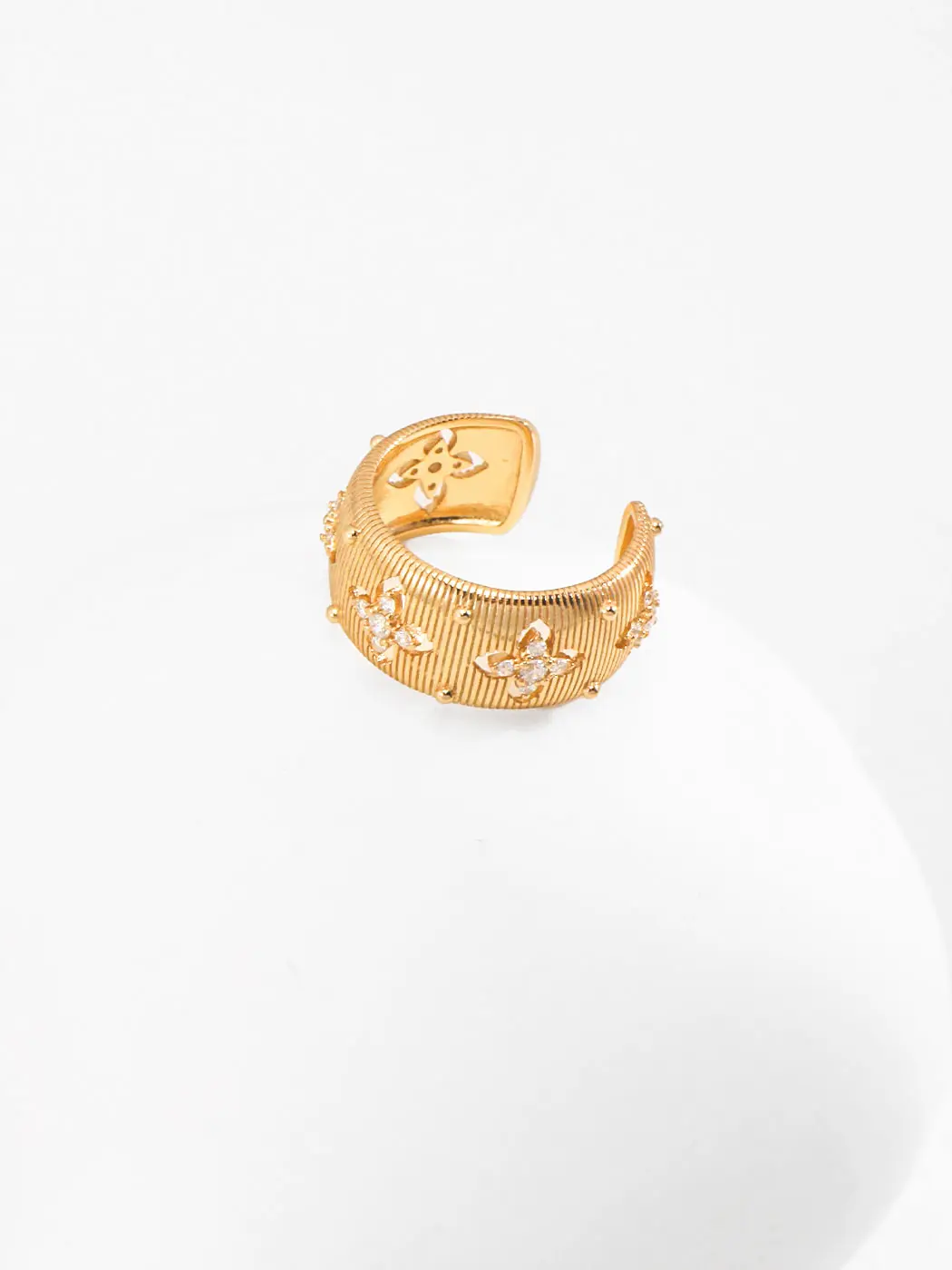 Furthermore, the shimmering zircon stones reflect light beautifully, offering a glamorous finish.