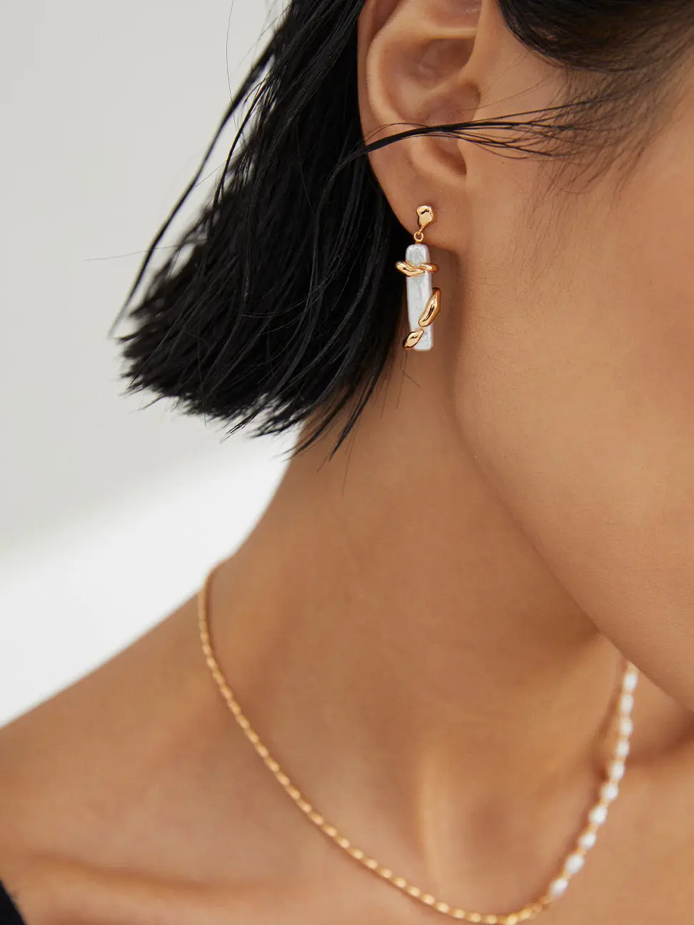 These earrings elevate clean black outfits, and they also soften structured looks effortlessly. The design suits minimalists who love natural elements, yet it also appeals to expressive dressers who want art-like jewelry. Moreover, the fluid shapes create movement that enhances short hairstyles or tucked-back hair. You can pair them with delicate pearl necklaces to create harmony, or you can style them with chunky chains for contrast. Because the earrings feel versatile, they transition easily from daytime settings to evening gatherings.