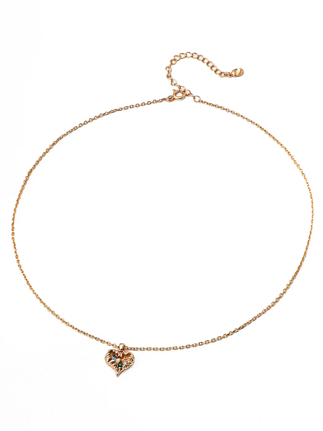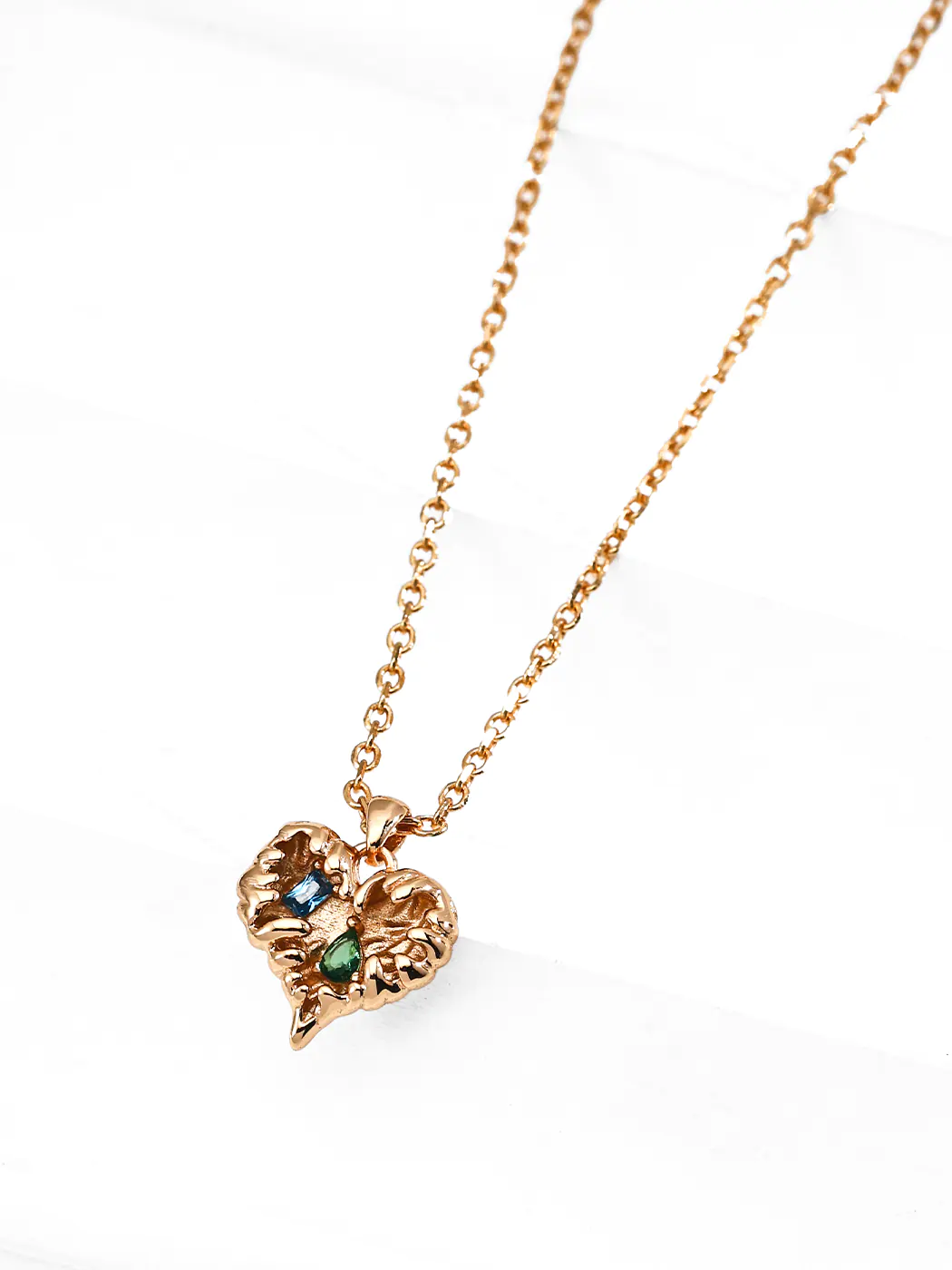 The Verdant Heart CZ Necklace showcases a sculpted heart pendant with textured details and sparkling zircon accents. Moreover, the vintage-gold plating adds warmth, while the green and blue cubic zirconia create vibrant contrast. The pendant measures about 1.3 cm, offering a compact yet eye-catching charm. With a 39 cm chain plus 6 cm extender, the necklace ensures a comfortable and adjustable fit. Therefore, the Verdant Heart CZ Necklace delivers elegance and romance in one design.