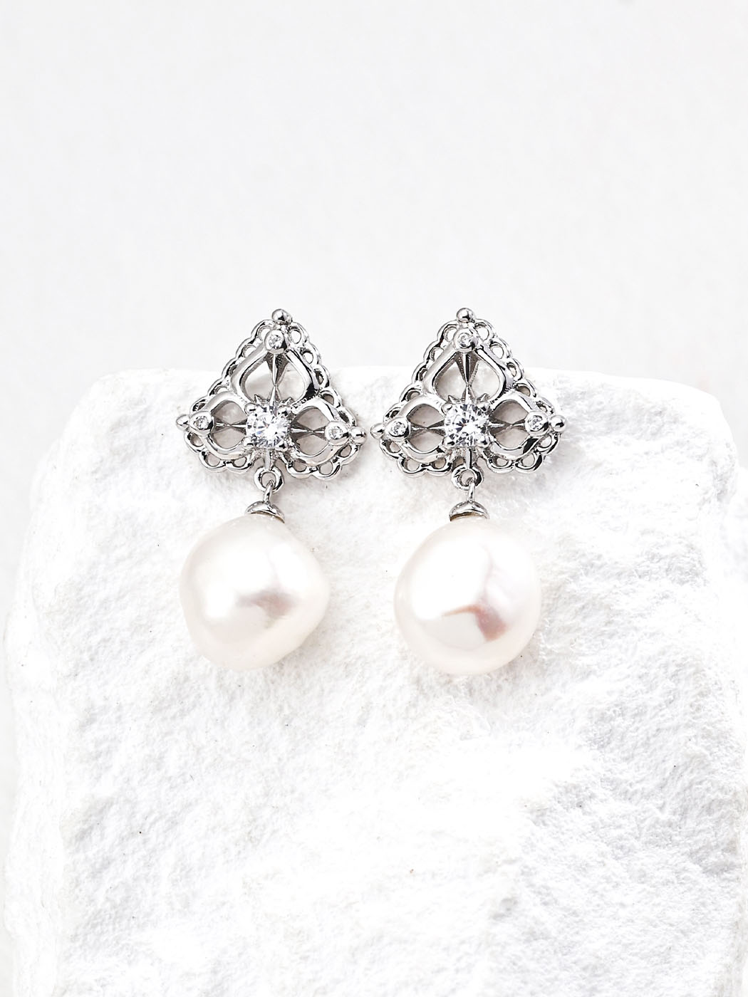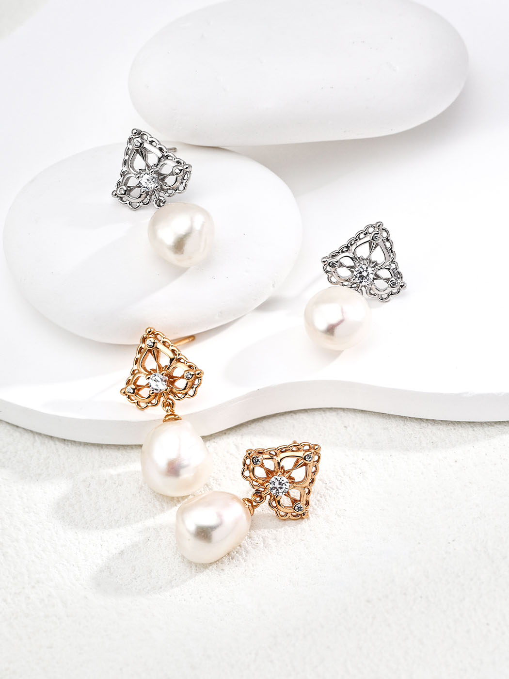 These earrings are crafted from premium S925 sterling silver for strength and long-lasting shine. Furthermore, they are available in both vintage gold and bright silver finishes, offering versatility in style. The filigree crown tops are accented with brilliant zircon stones that provide sparkle without overshadowing the pearls. In addition, the natural pearls measure around 0.9 × 1.2 cm, giving each earring a soft and radiant focal point. Consequently, the combination of silver, zircon, and pearl delivers both durability and timeless beauty.